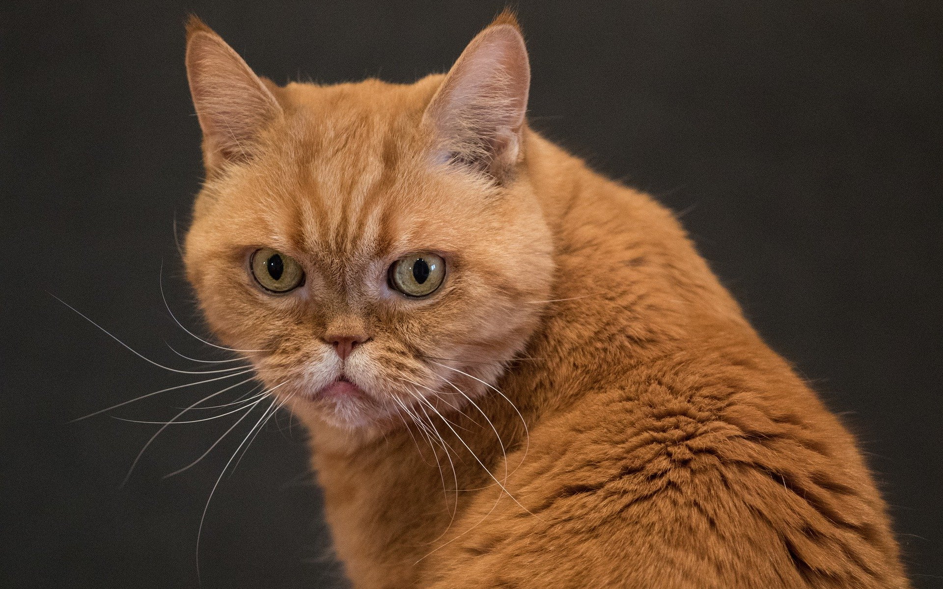 Description: A close up of a cat with a black background behind it and a black background behind it.