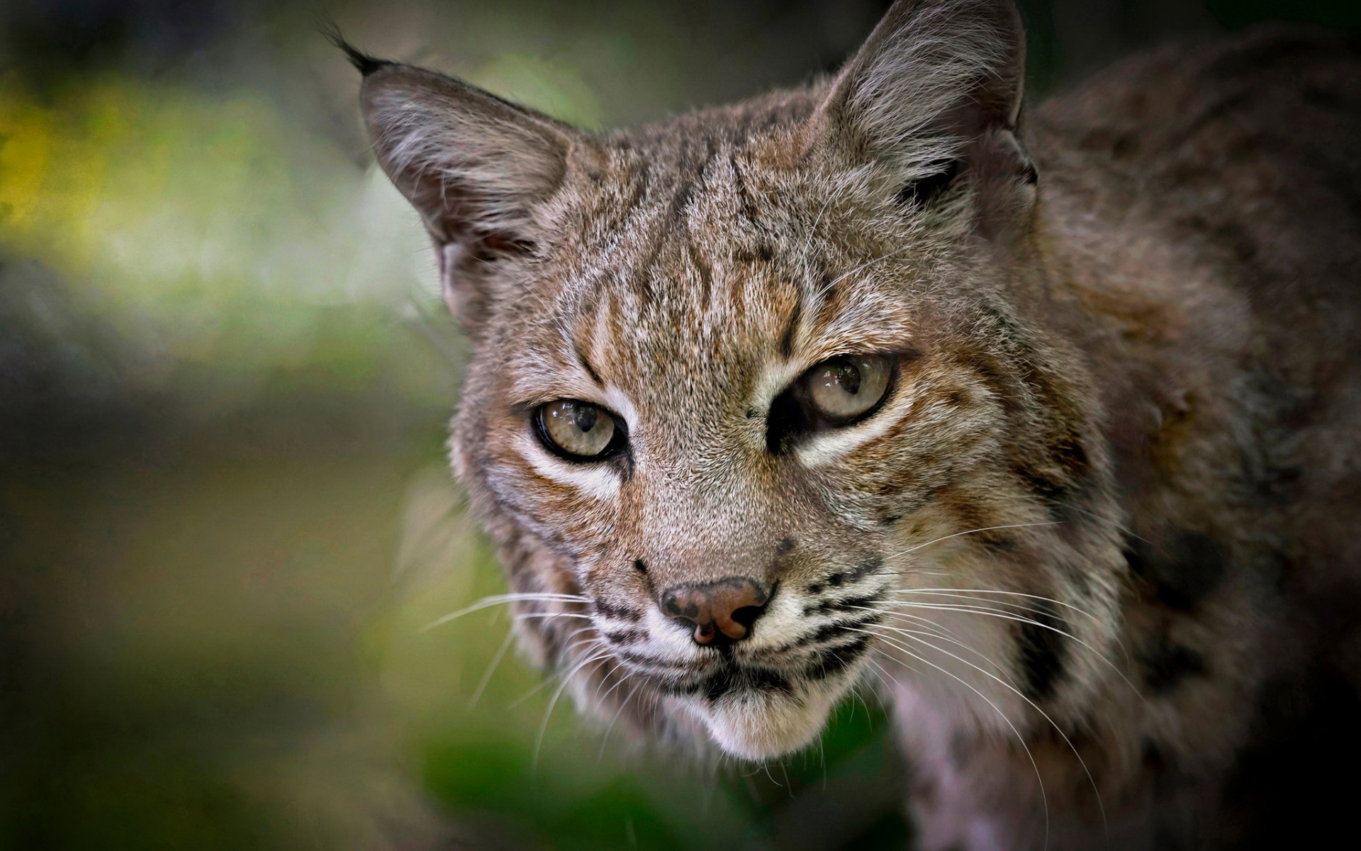 Description: A close up of a cat with a blurry background and a blurry background behind it.