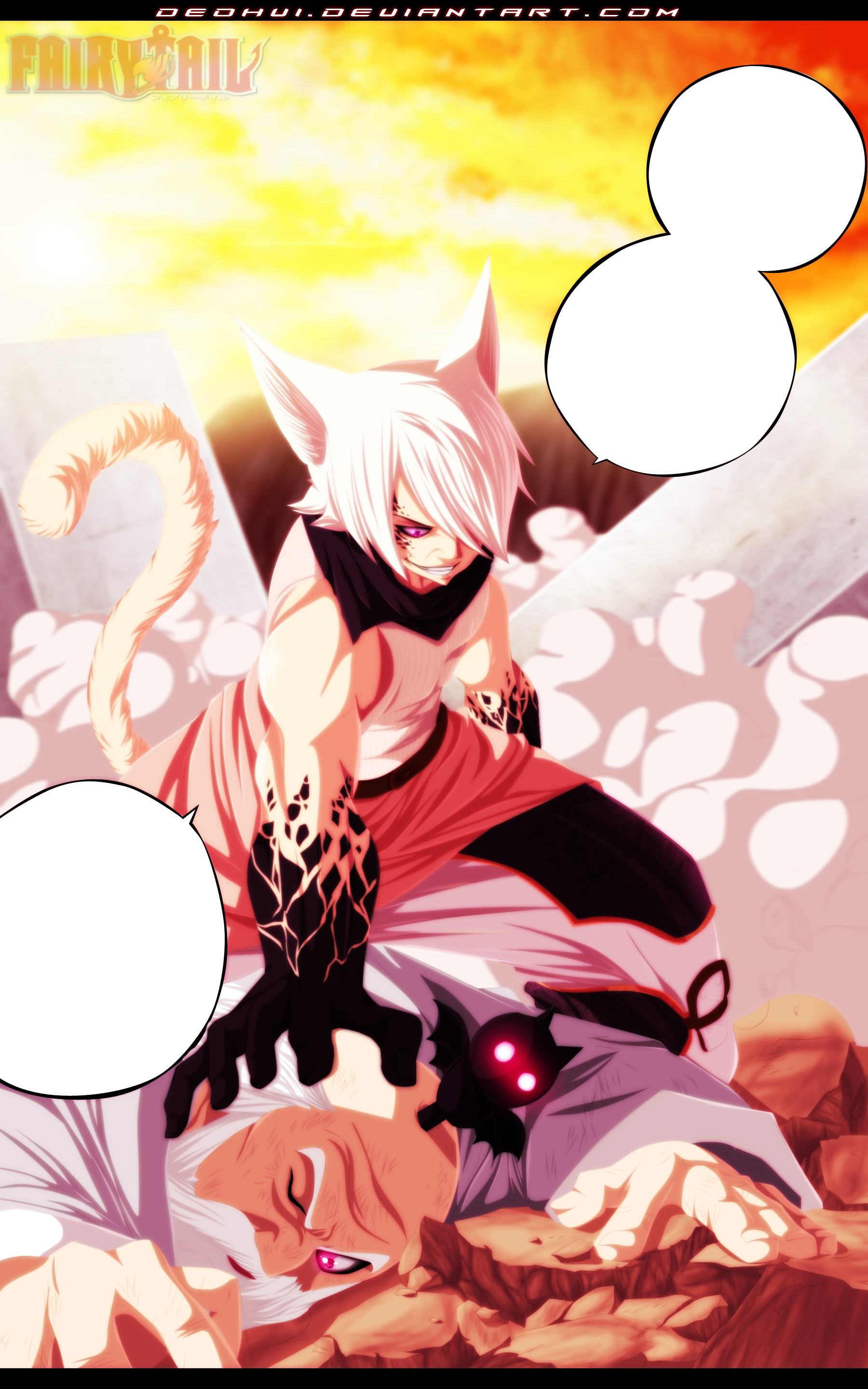 Description: A comic strip with a cat and a man in a red dress and a cat on his back.