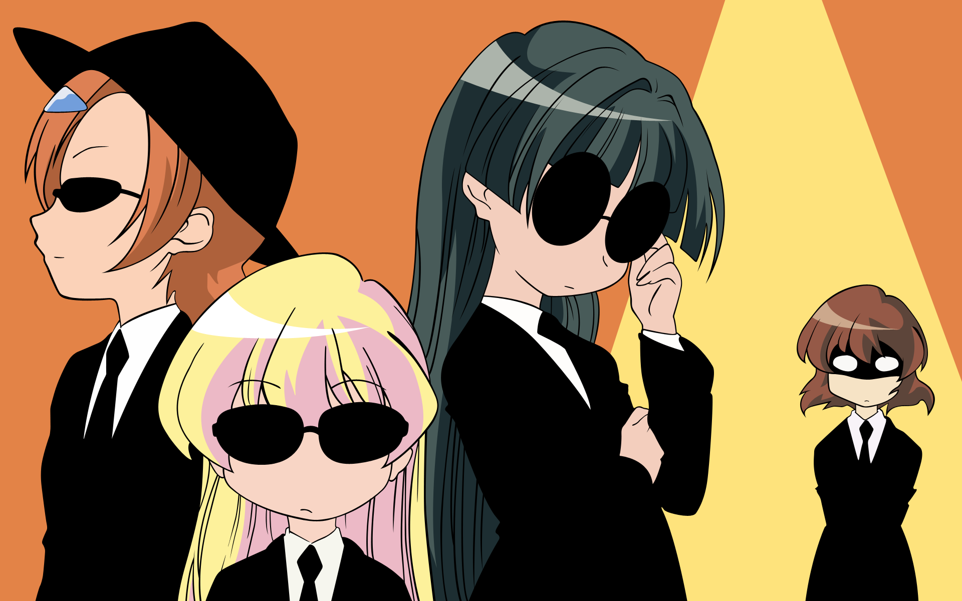 Description: A couple of people with sunglasses and a cat on their heads and a person with a cat on their head.