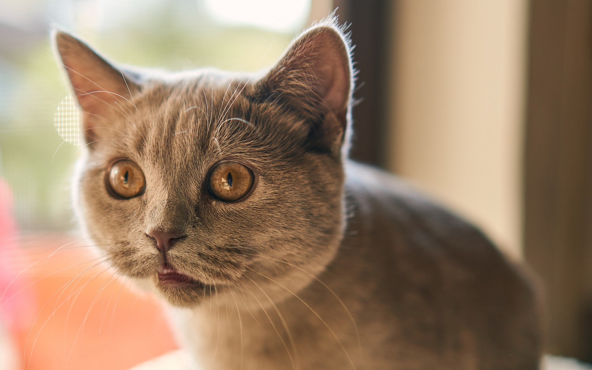 Description: A cat looking at the camera with a surprised look on its face and eyes.