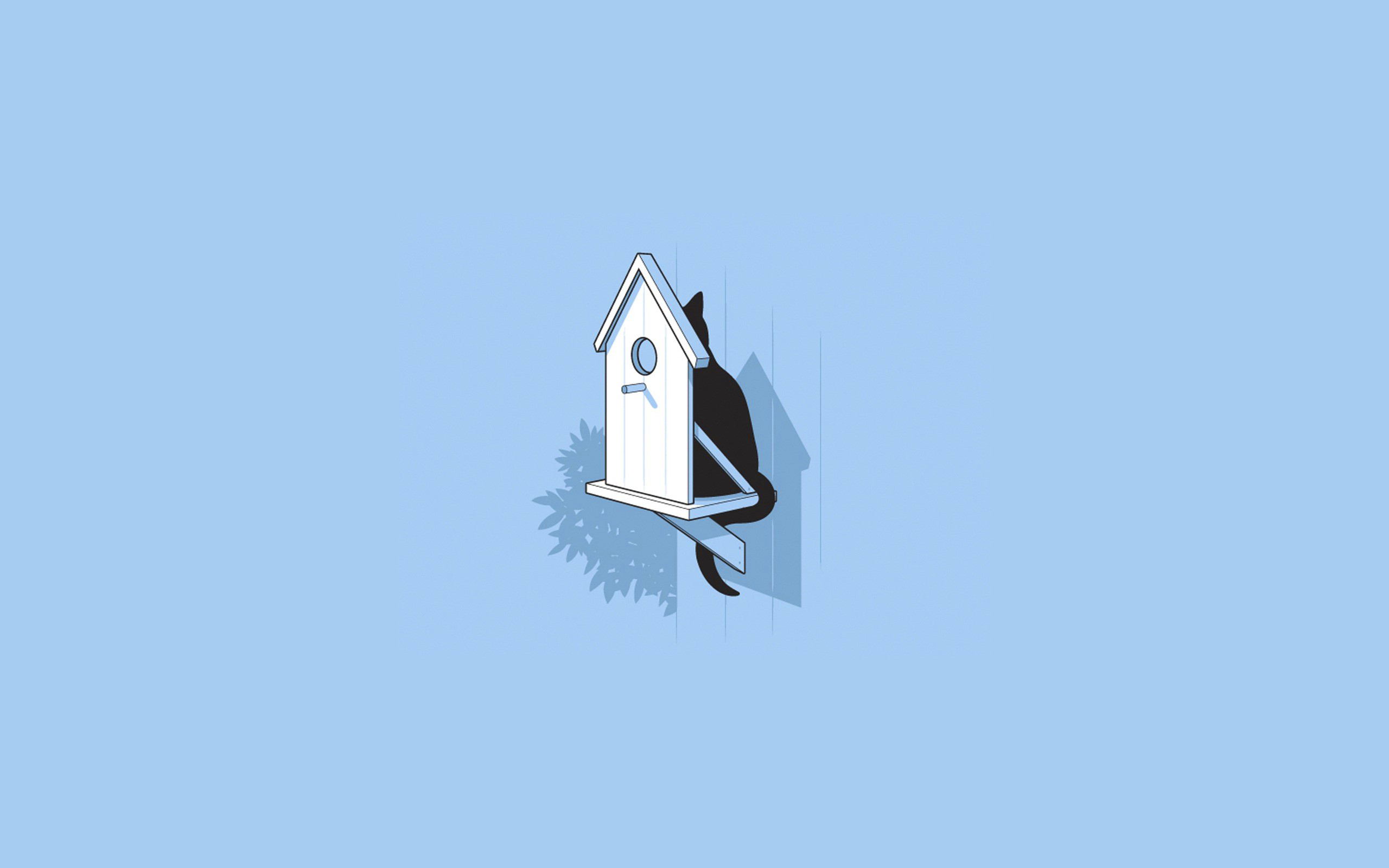 Description: A cat is sitting on a wall with a clock on it's side and a shadow of a cat on the wall.