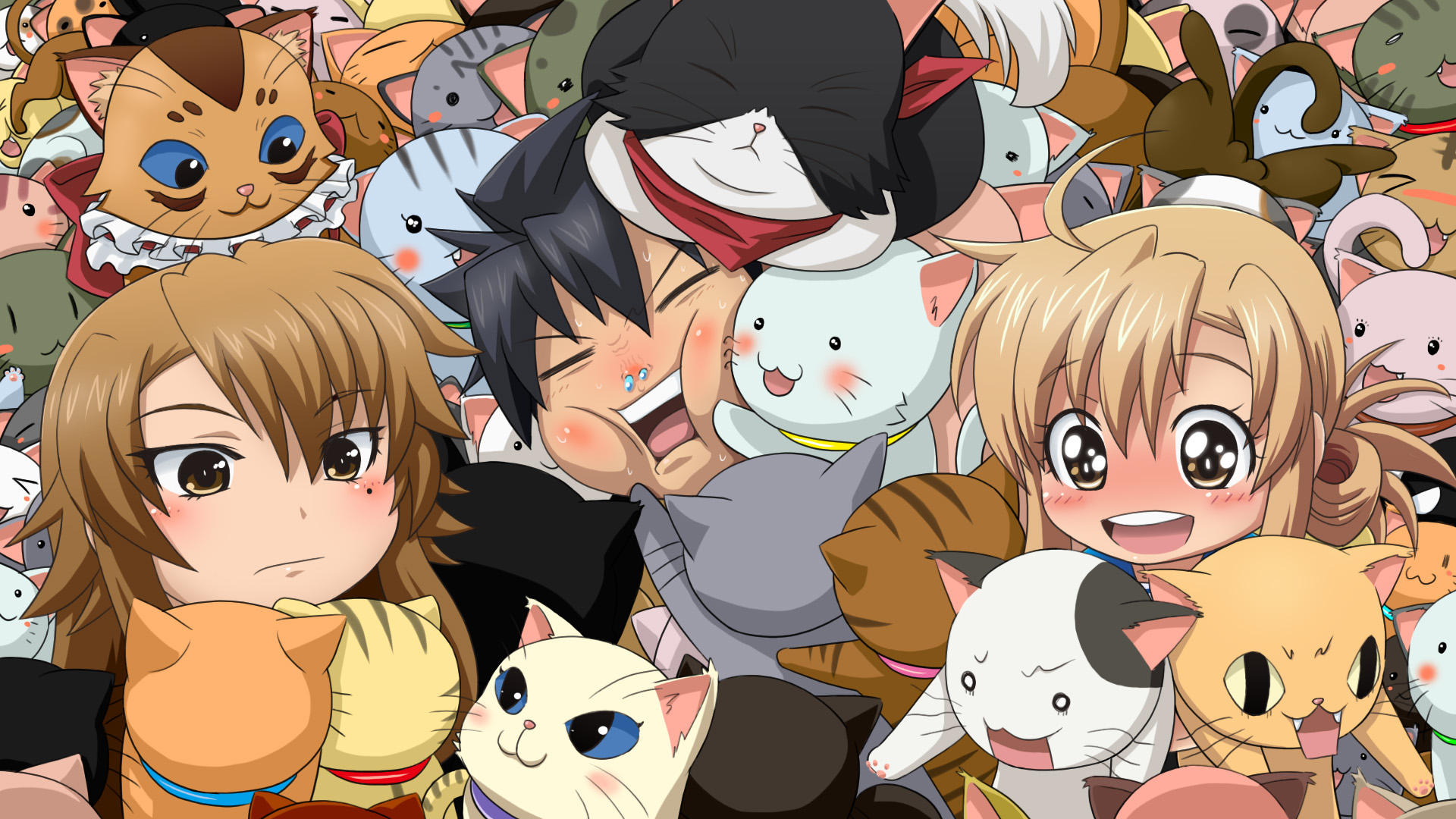 Description: A group of cats and cats are all around a girl in a crowd of cats and cats are all around her.