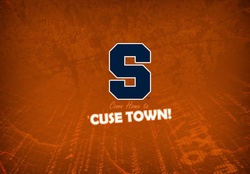 Description: A close up of a wall with the word'cause town'in it and a blue and white s on it.