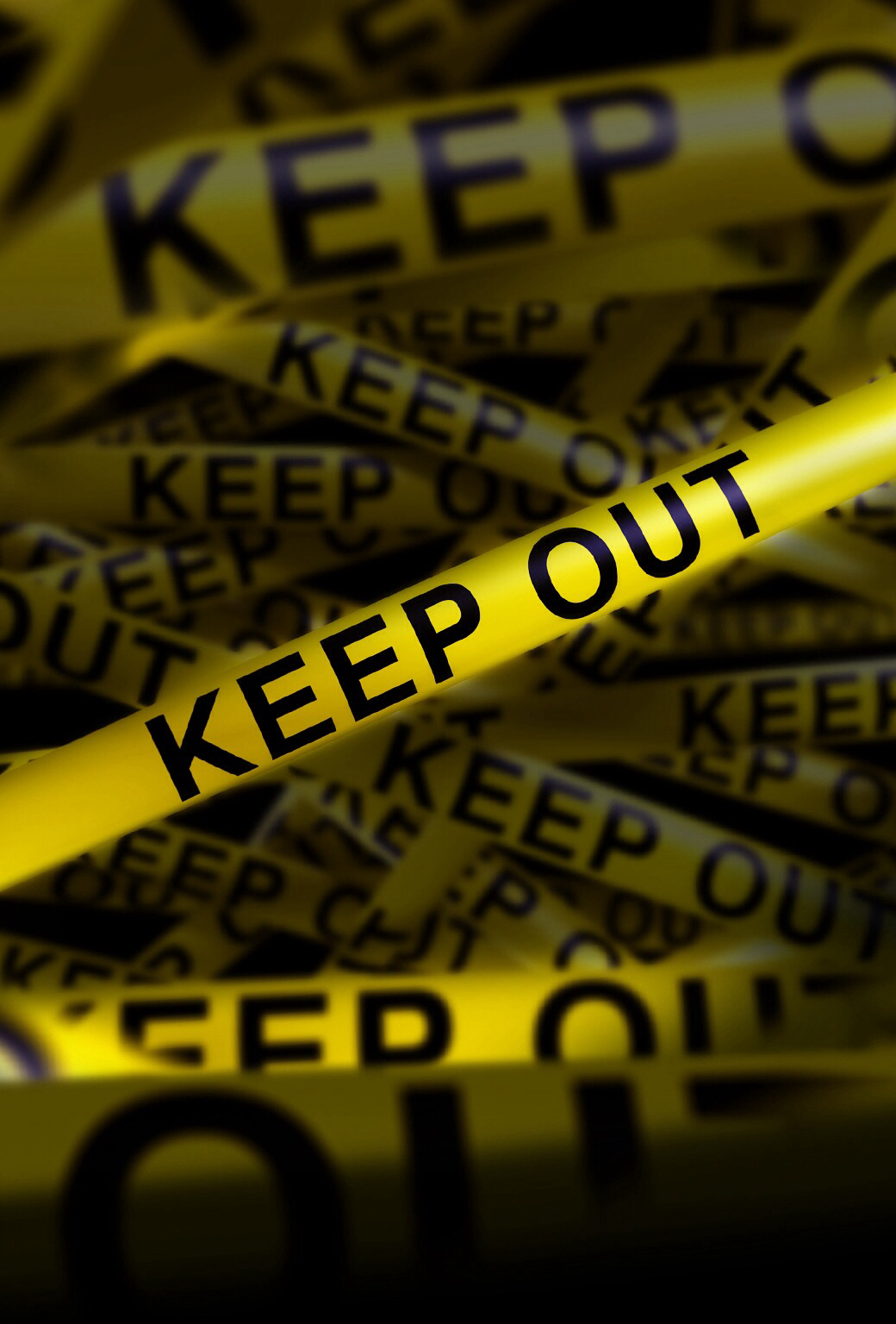 Description: A yellow caution tape with keep out written on it and a black background with yellow letters and a black background with yellow and white letters.