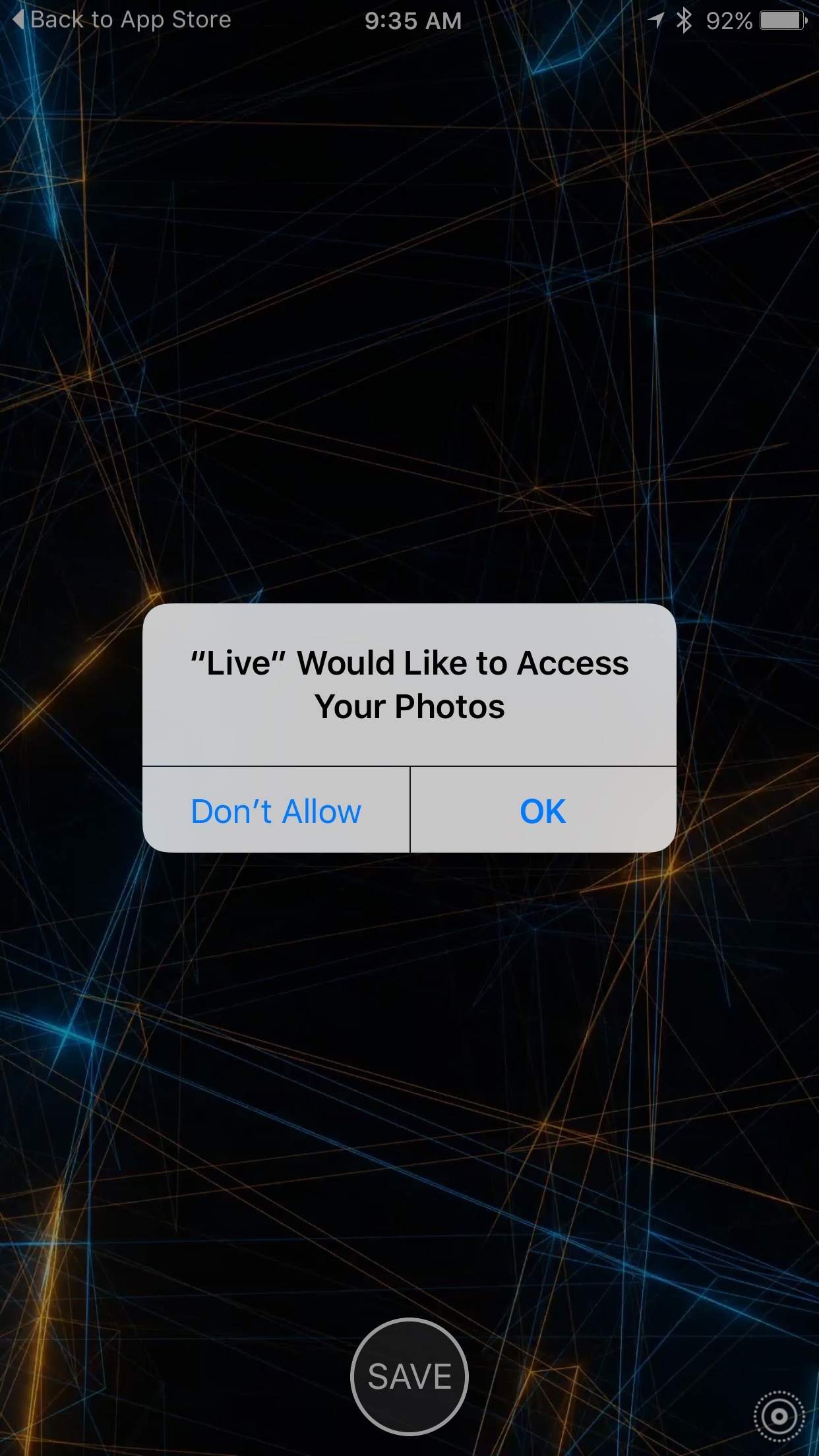 Description: A cell phone with a message on it that says live would like to access your photos don't allow.