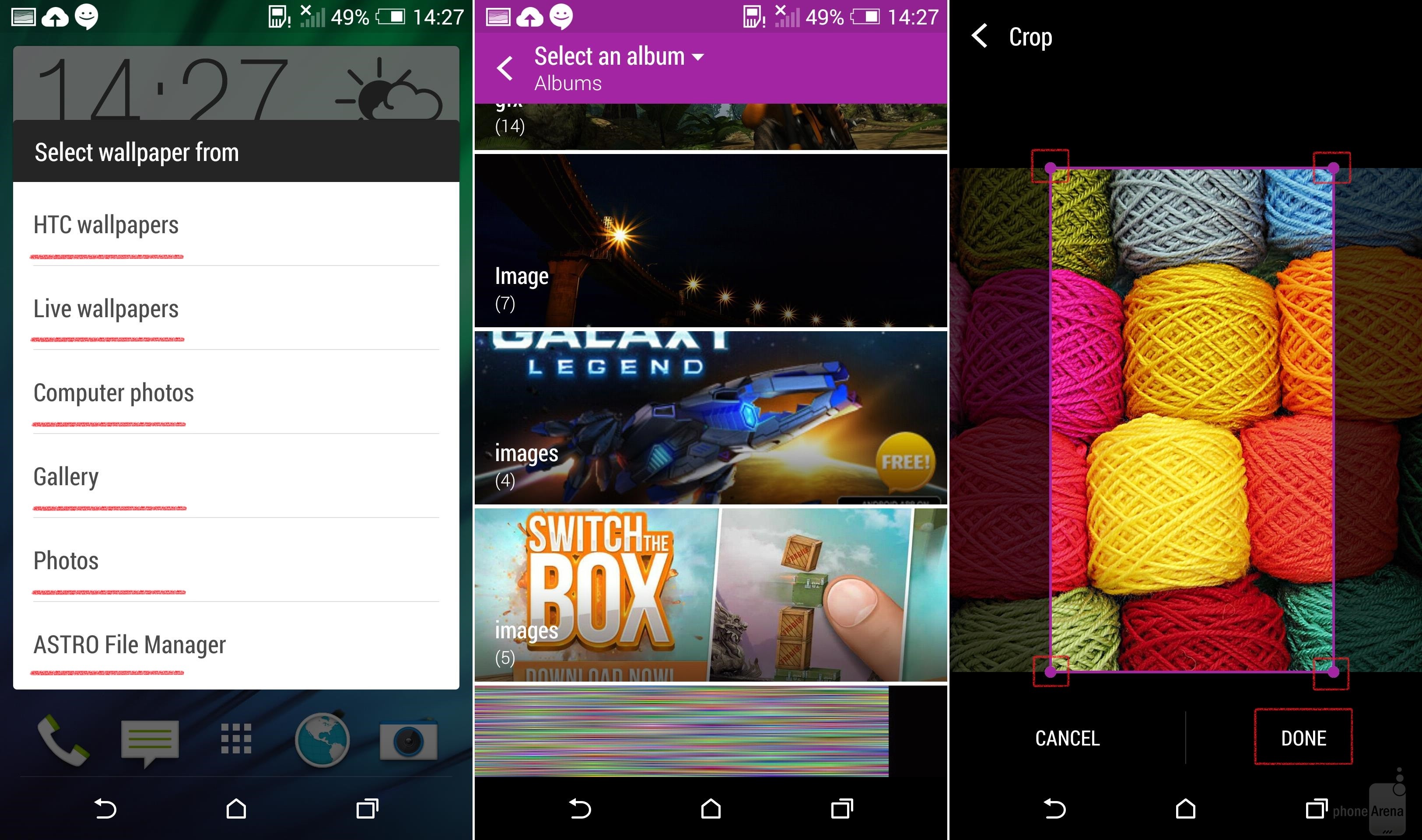 Description: A cell phone with a bunch of different pictures on it's screen and a bunch of balls of yarn on the screen.
