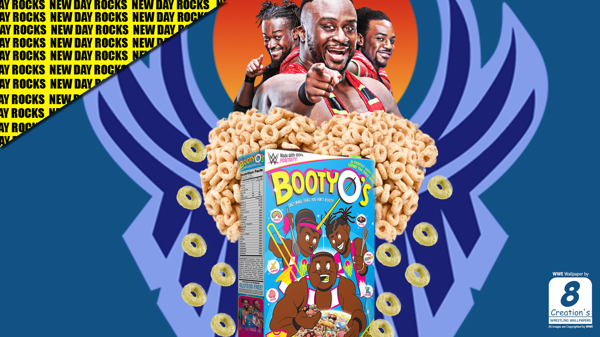 Description: A cereal box with a picture of a man pointing at it with cereal in front of it and a poster of a man pointing at it.