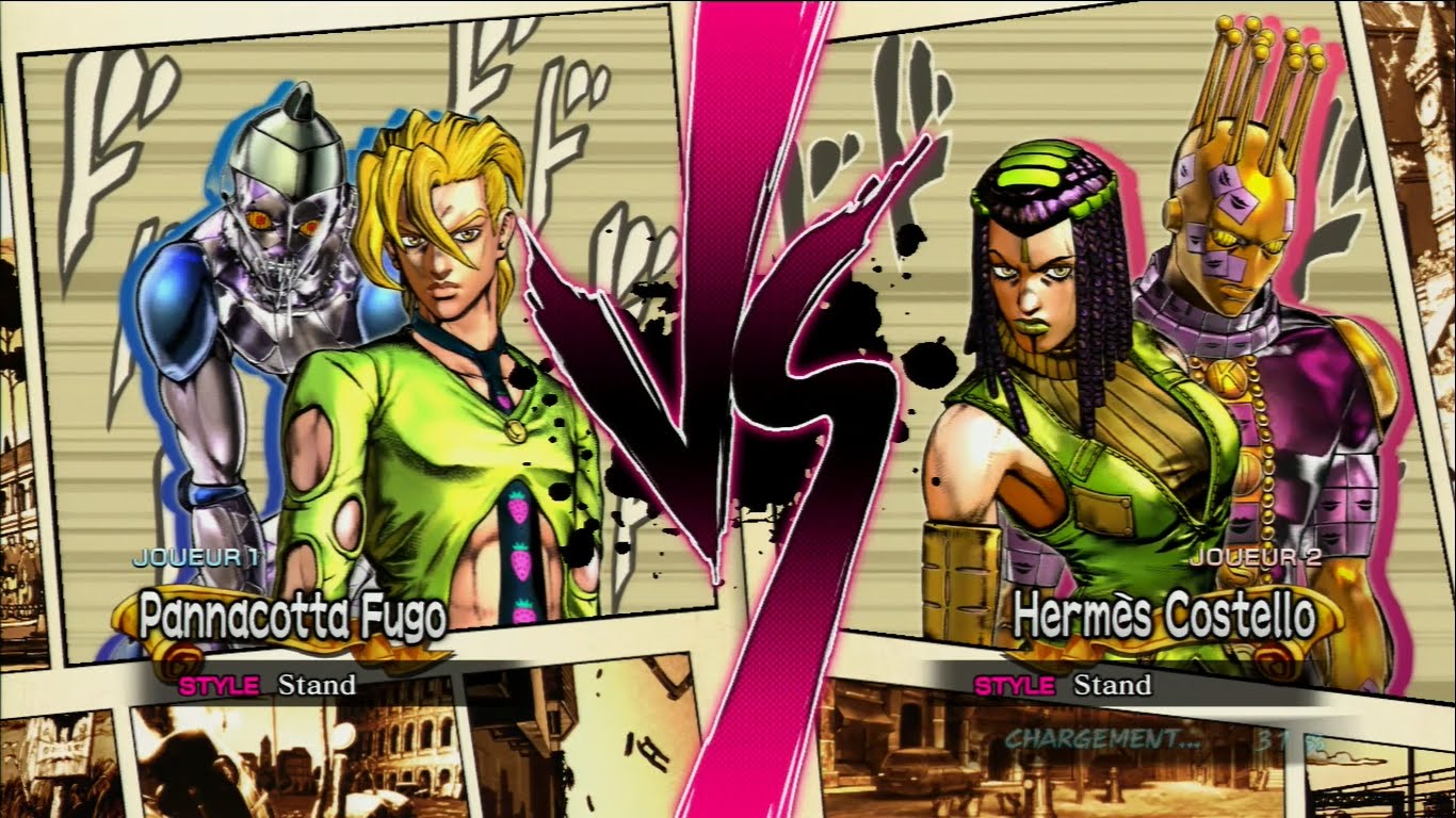 Description: Two different screens of a character in a video game.
