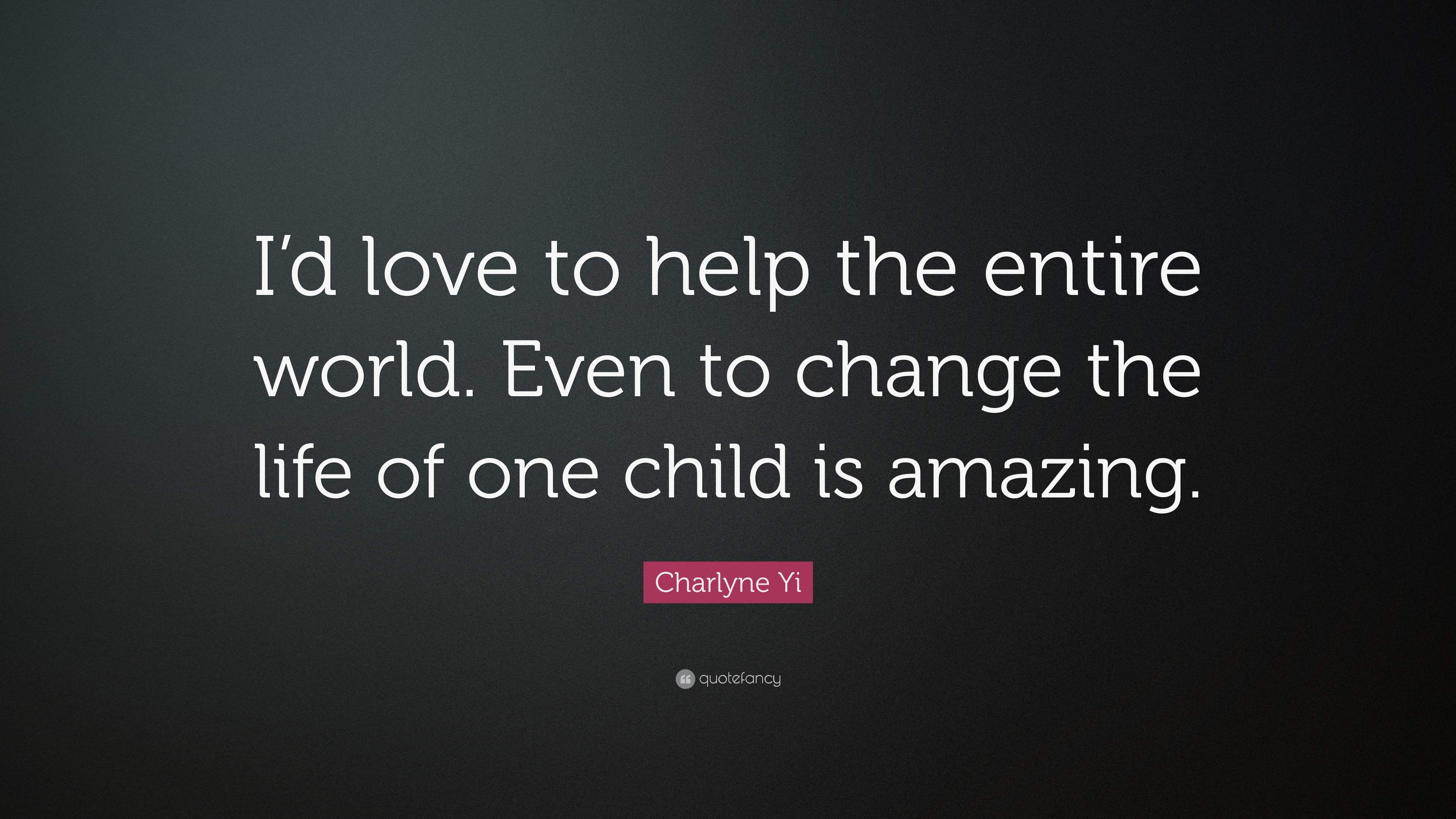 Description: A quote from charlie wilde about love to help the entire world even to change the life of one child is amazing.