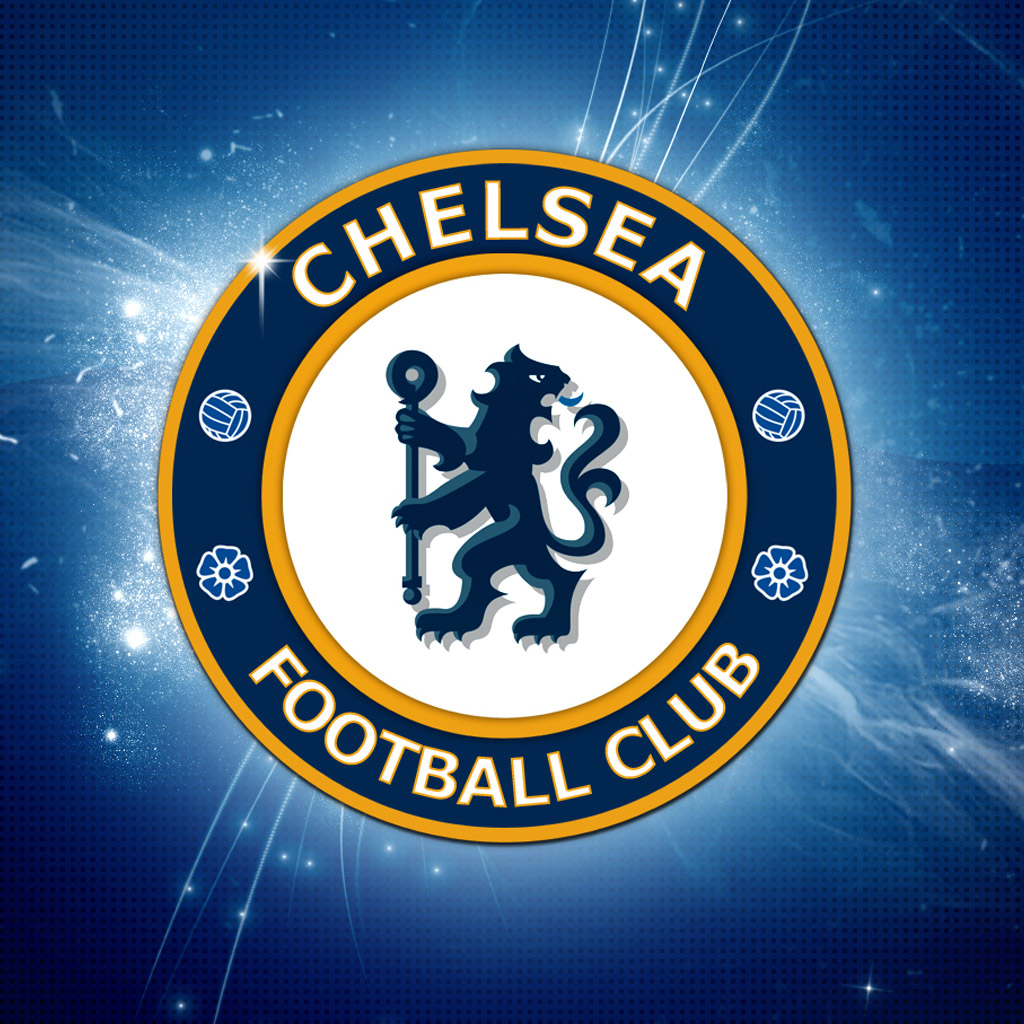 Description: A chelsea logo on a blue background with stars and sparkles around it and a lion on the bottom of the circle.