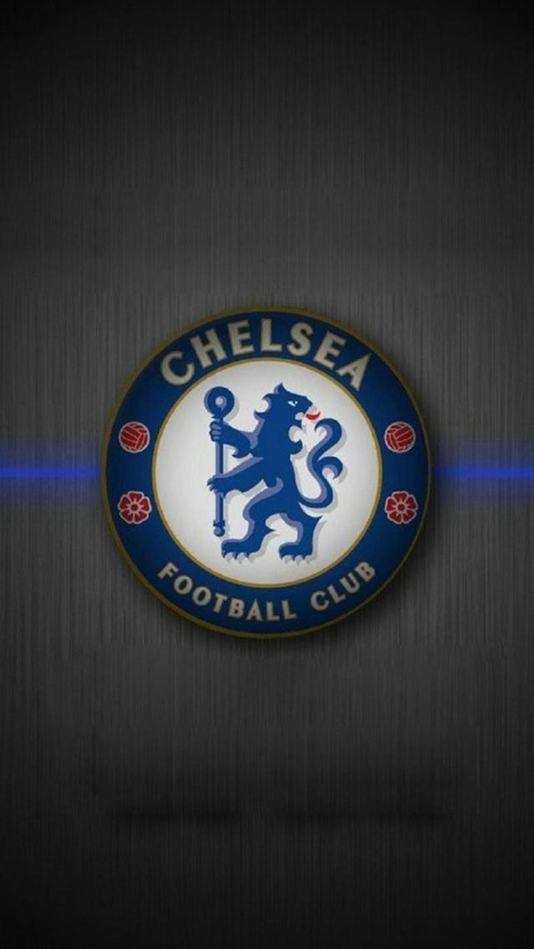 Description: A chelsea logo on a metal surface with blue lights on it and a blue light behind it that reads chelsea.