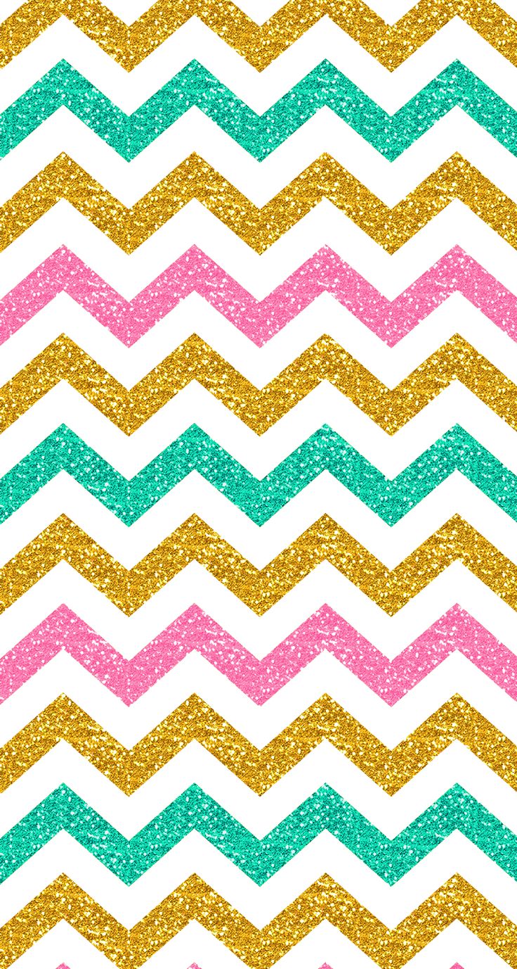 Description: A chevroned pattern with gold glitter on it's edges and a pink and blue stripe on the bottom.