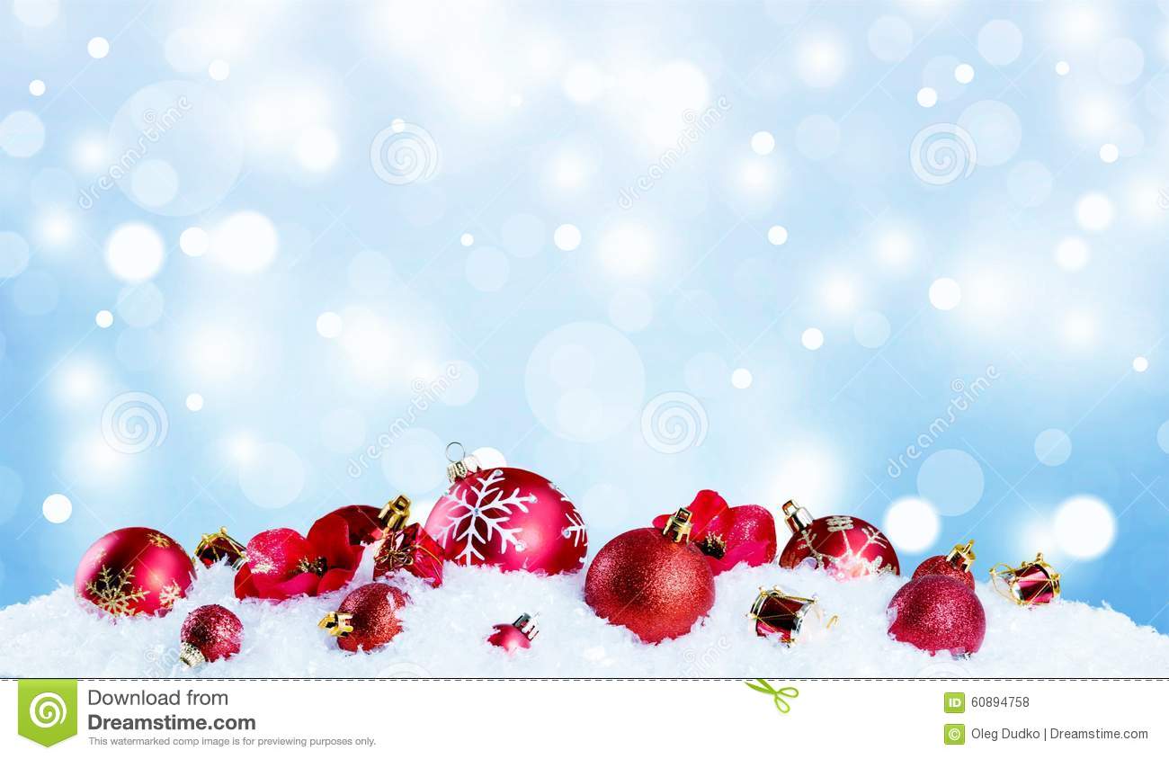 Description: A christmas background with pomegranates and snow on a blue background with boket of snow.