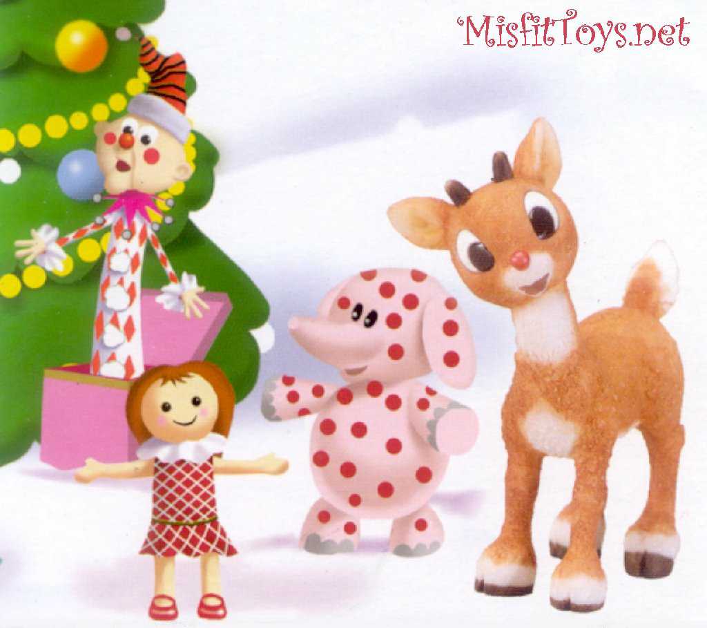 Description: A christmas card with a girl and two toys next to a christmas tree and a deer and a girl.