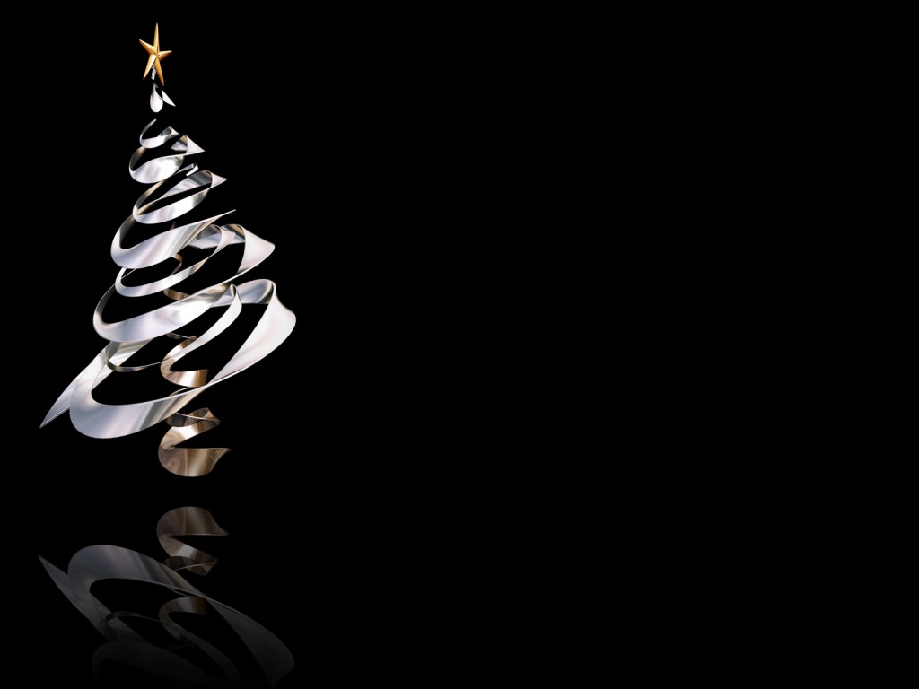 Description: A christmas tree with a star on top of it in the dark background with a reflection on the floor.