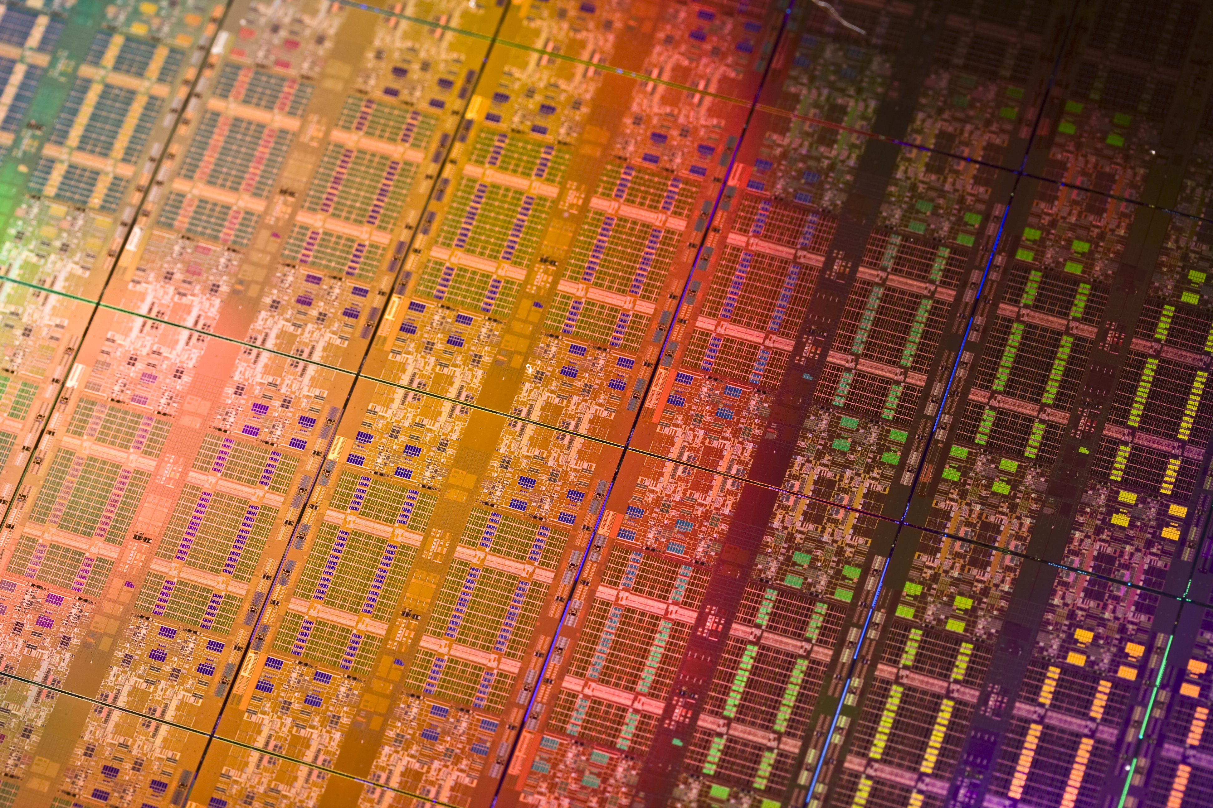 Description: A close up of a multicolored circuit board with many colors of the same color as the background.