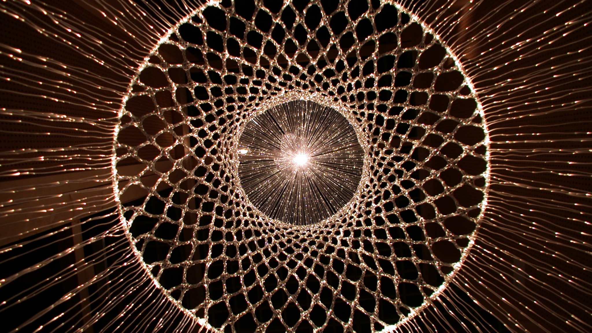 Description: A circular pattern made of lights in the dark sky with a star in the center of the image and a black background.
