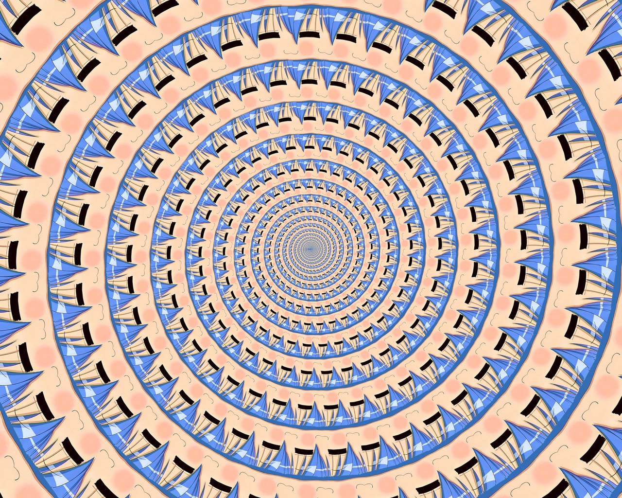 Description: A circular pattern with a blue and pink background and a white circle with a black outline on the center.