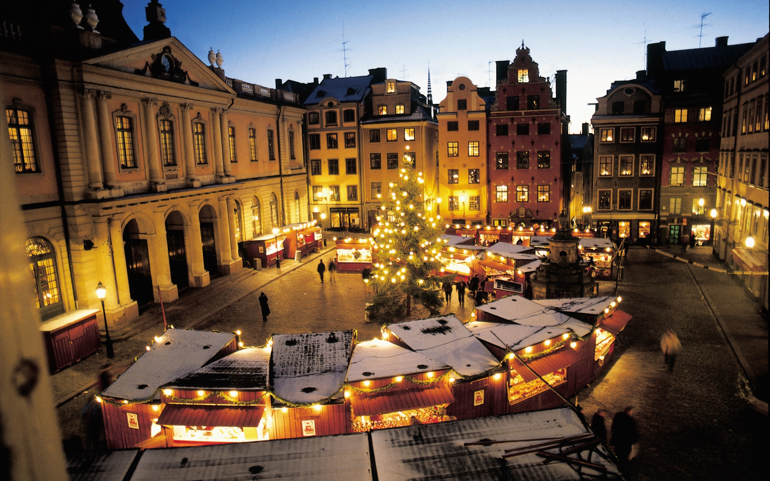 Description: A city square with a lot of lights on it and a lot of buildings around it with a lot of lights on them.