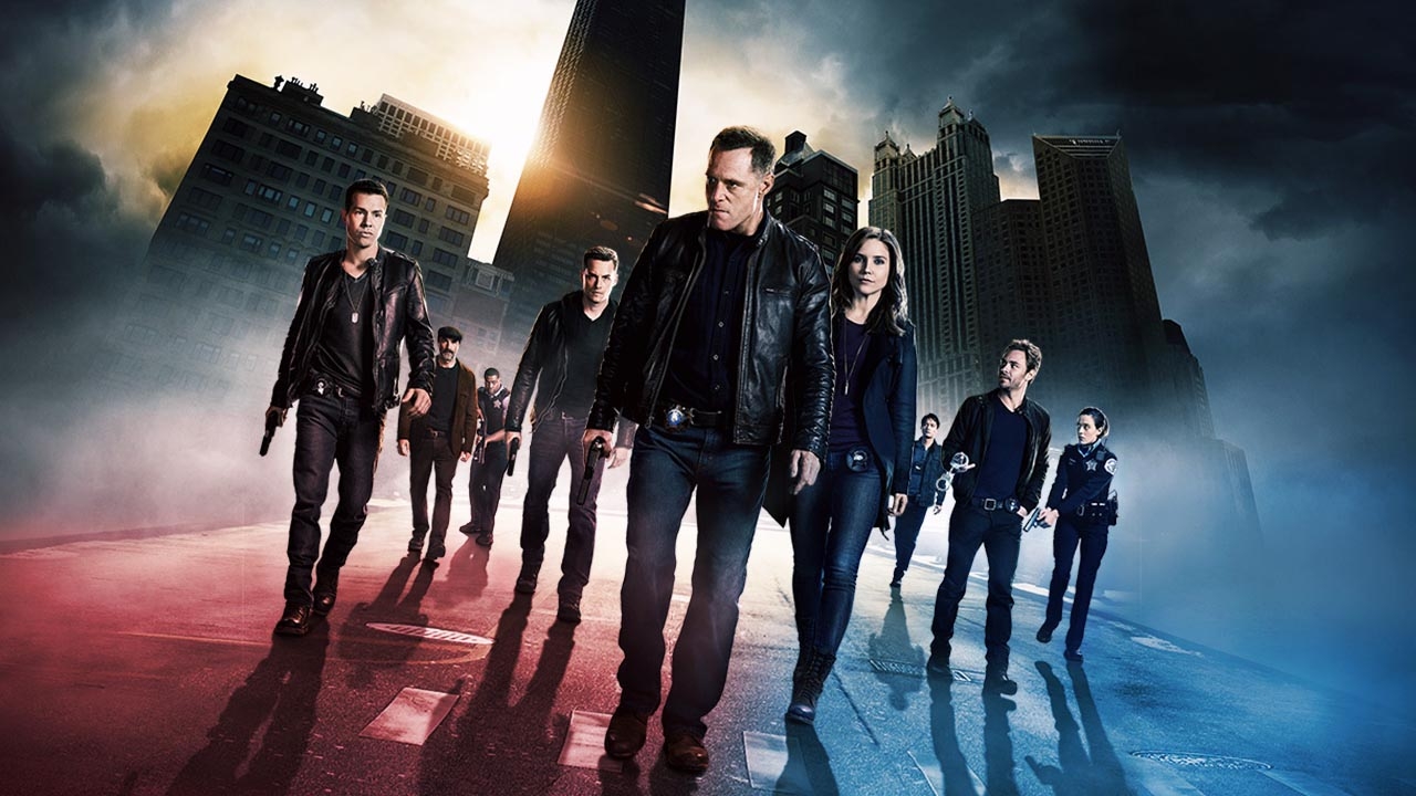 Description: A group of people walking down a street in front of tall buildings in a city at night time with a full moon.