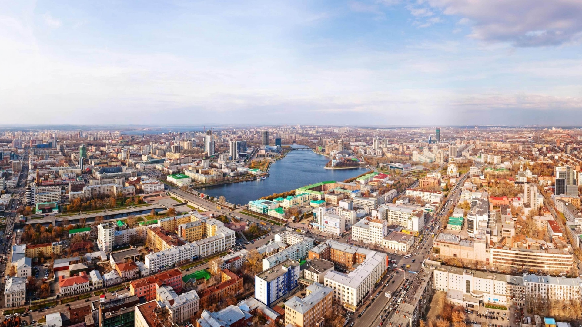 Description: A city with a river running through it and a bridge in the middle of the city with a bridge going over it.