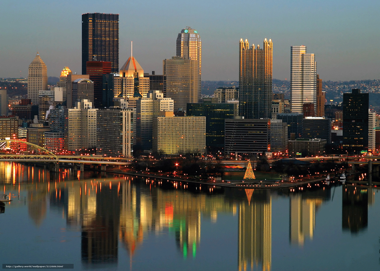 Description: A city skyline with a bridge and a river in the foreground and a bridge in the foreground.