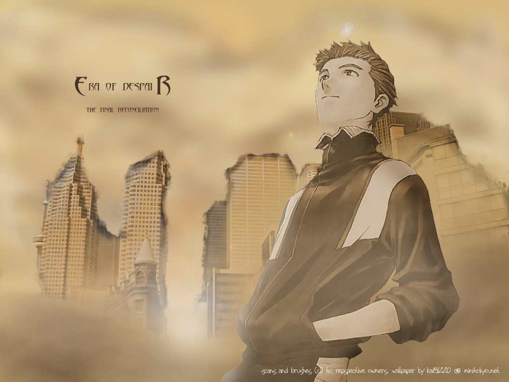 Description: A man standing in front of a city skyline with a sky background and a sky background with buildings in the background.