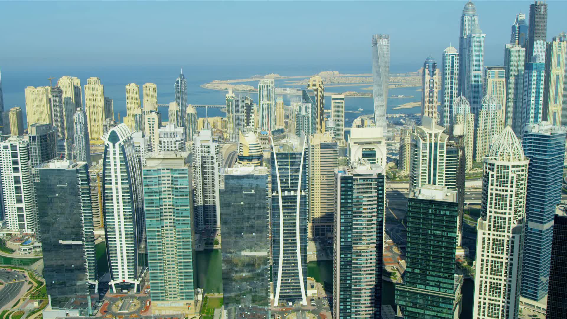 Description: A city with a lot of tall buildings in it's foreground and a body of water in the background.