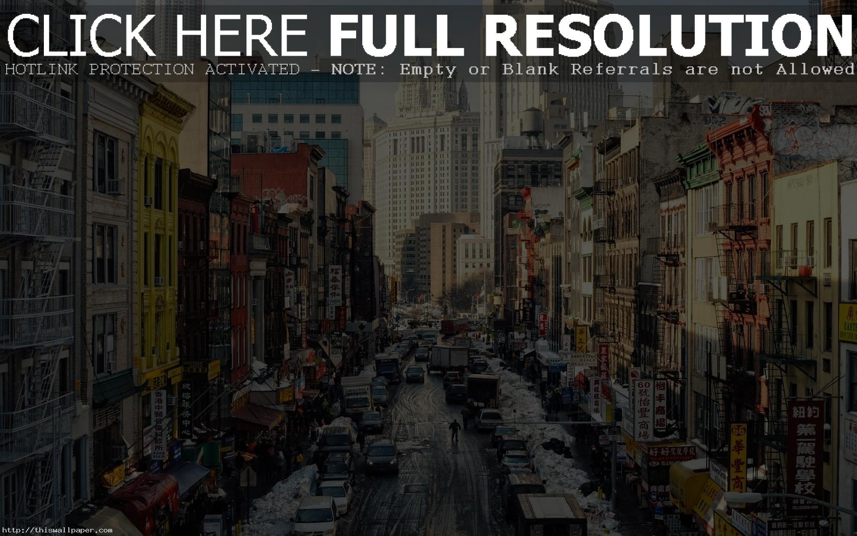 Description: A city street filled with lots of traffic and tall buildings with a sign that says click here full resolution.
