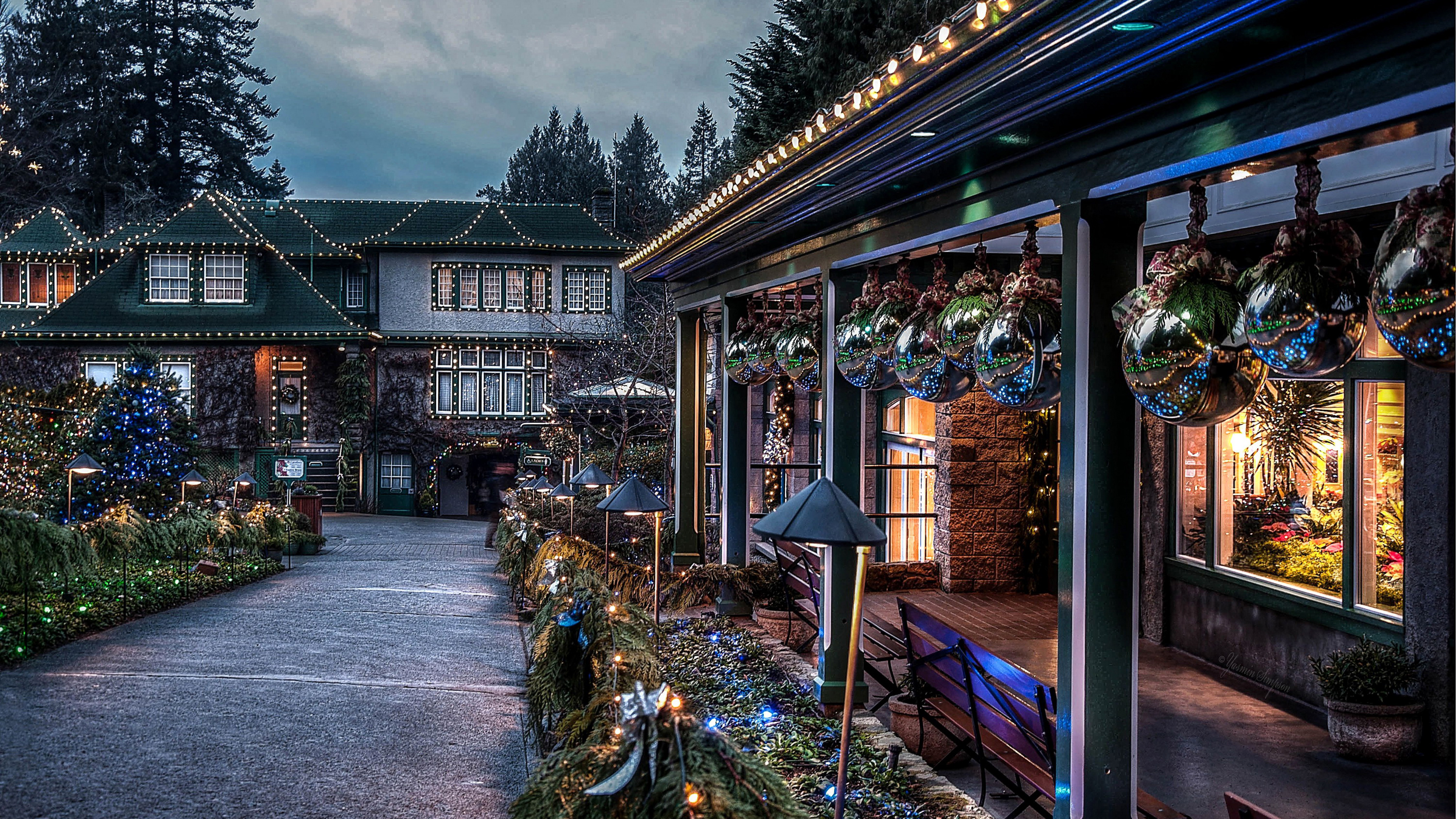 Description: A building with a lot of lights on it and a walkway leading to it and a walkway leading to the building.