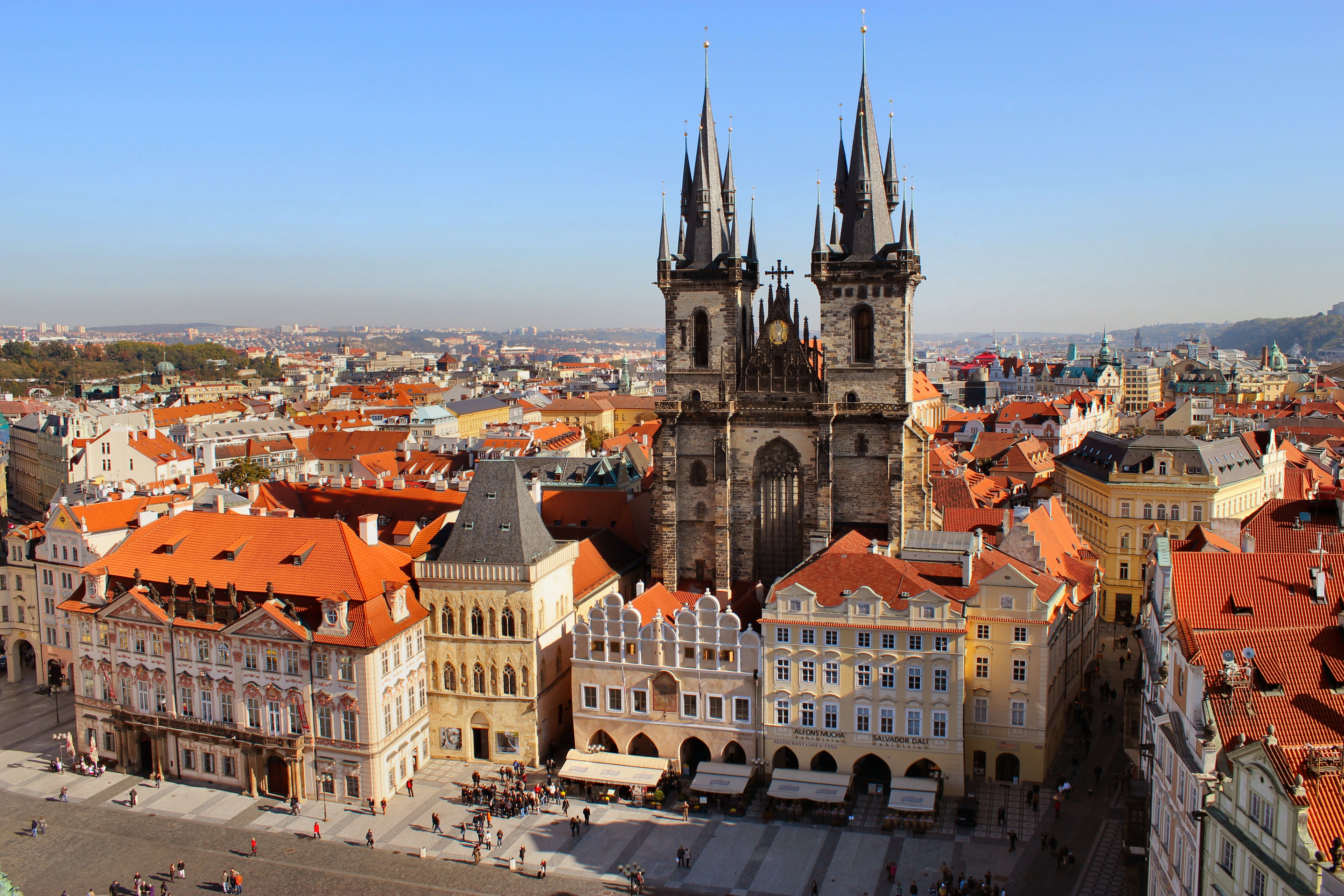 Description: A city with a lot of tall buildings and a clock tower in the middle of it's center.