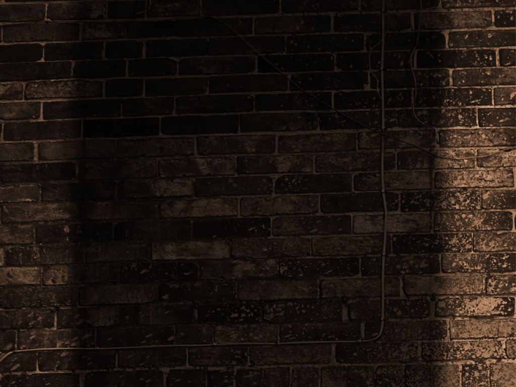 Description: A clock on a brick wall with a shadow of a person on it's face and a brick wall behind it.