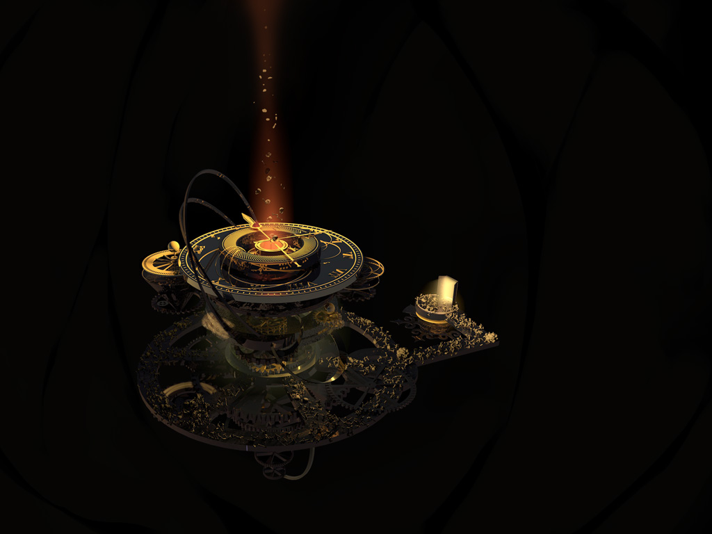 Description: A computer generated image of a clock with a candle on top of it and a candle in the middle.