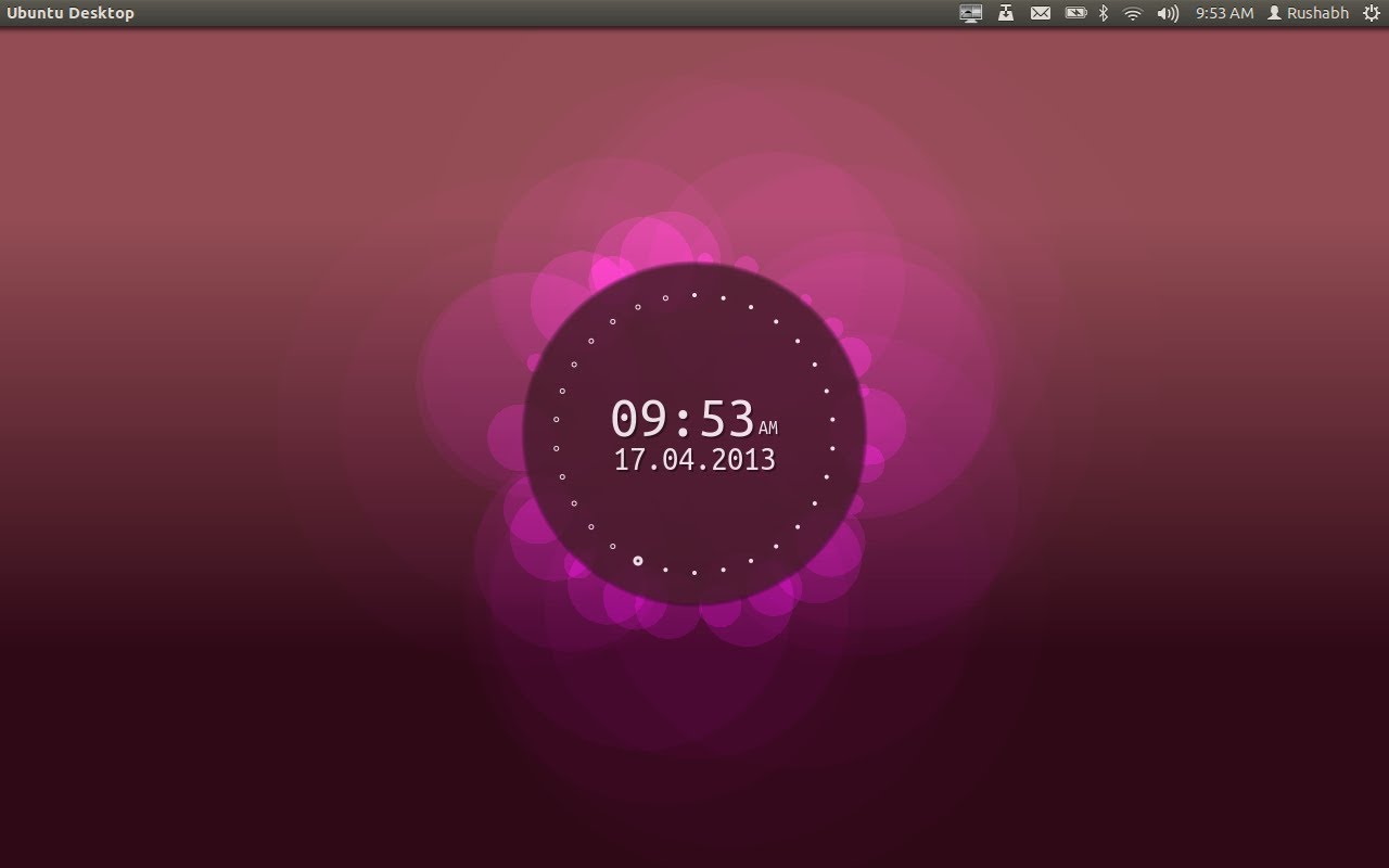 Description: A clock is displayed on a purple background with circles and dots in the middle of the clock face.
