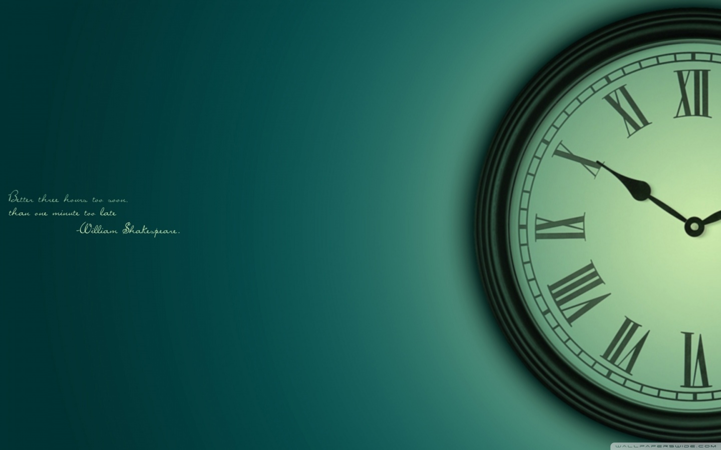 Description: A clock with roman numerals on a green background with a place for text or image to be placed.