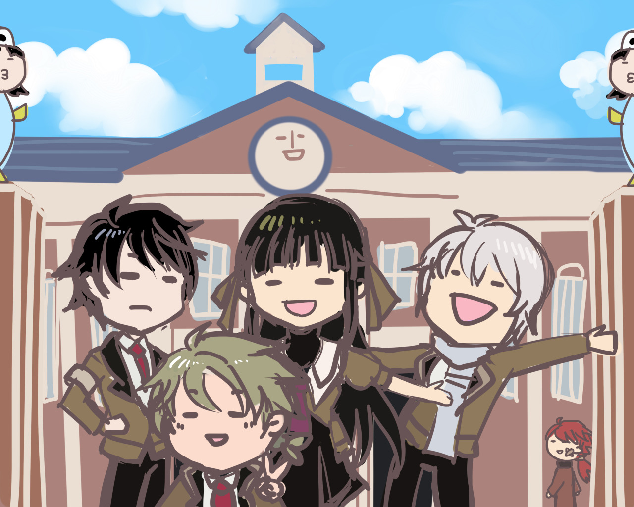 Description: A group of people standing in front of a building with a clock on it's face and a clock tower in the background.