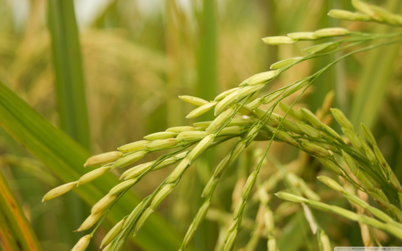 Description: A close up of a plant with lots of green leaves in the background and a blurry sky in the background.