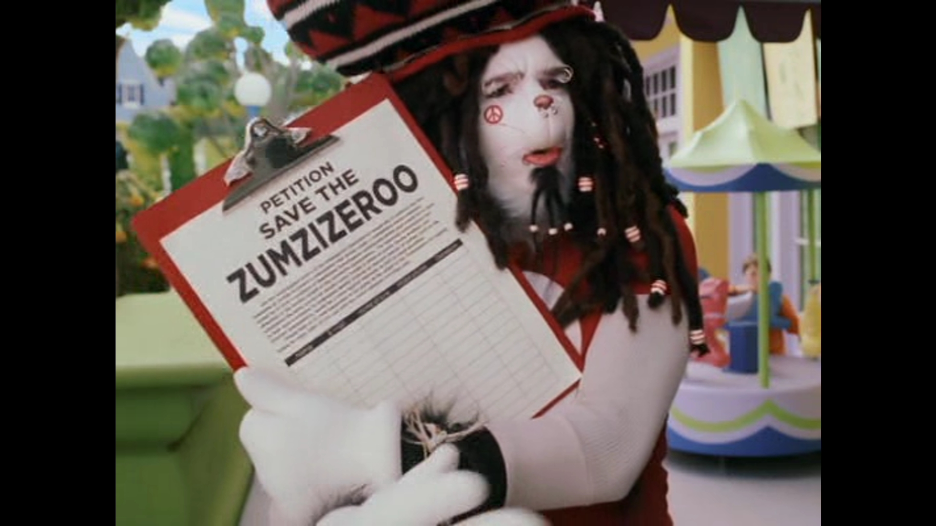 Description: A person with a clipboard in their hand and a clown's face painted on it's face.