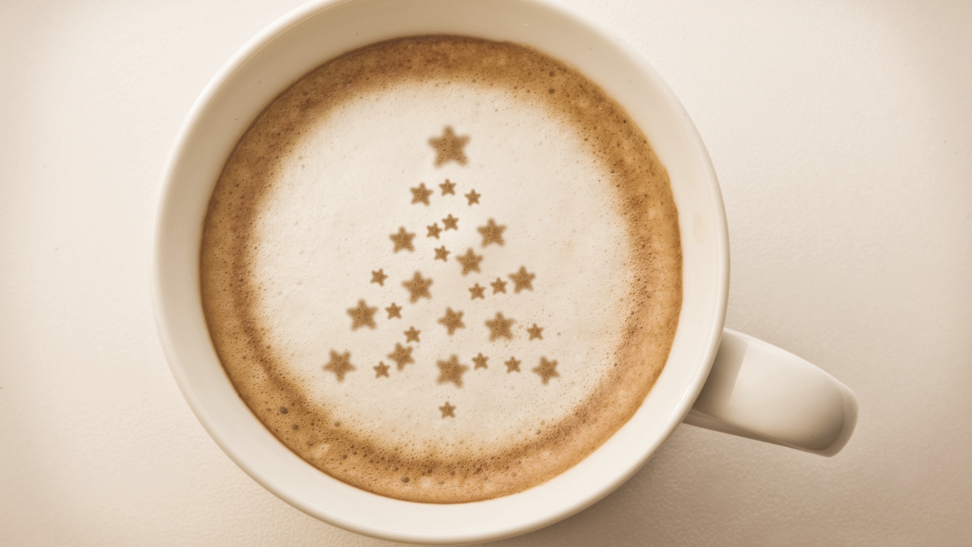Description: A cup of coffee with a star pattern in it's foamy foamy foamy foamy foam.