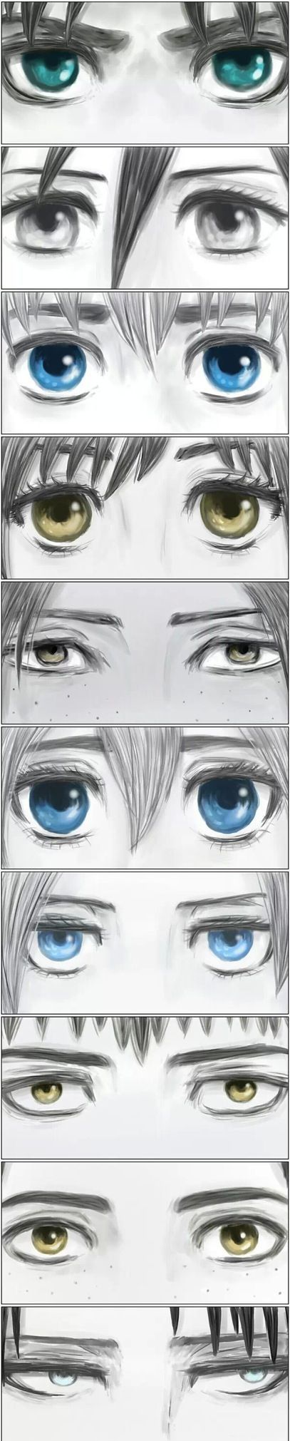 Description: A series of different colored eyes with different shapes and sizes of them.
