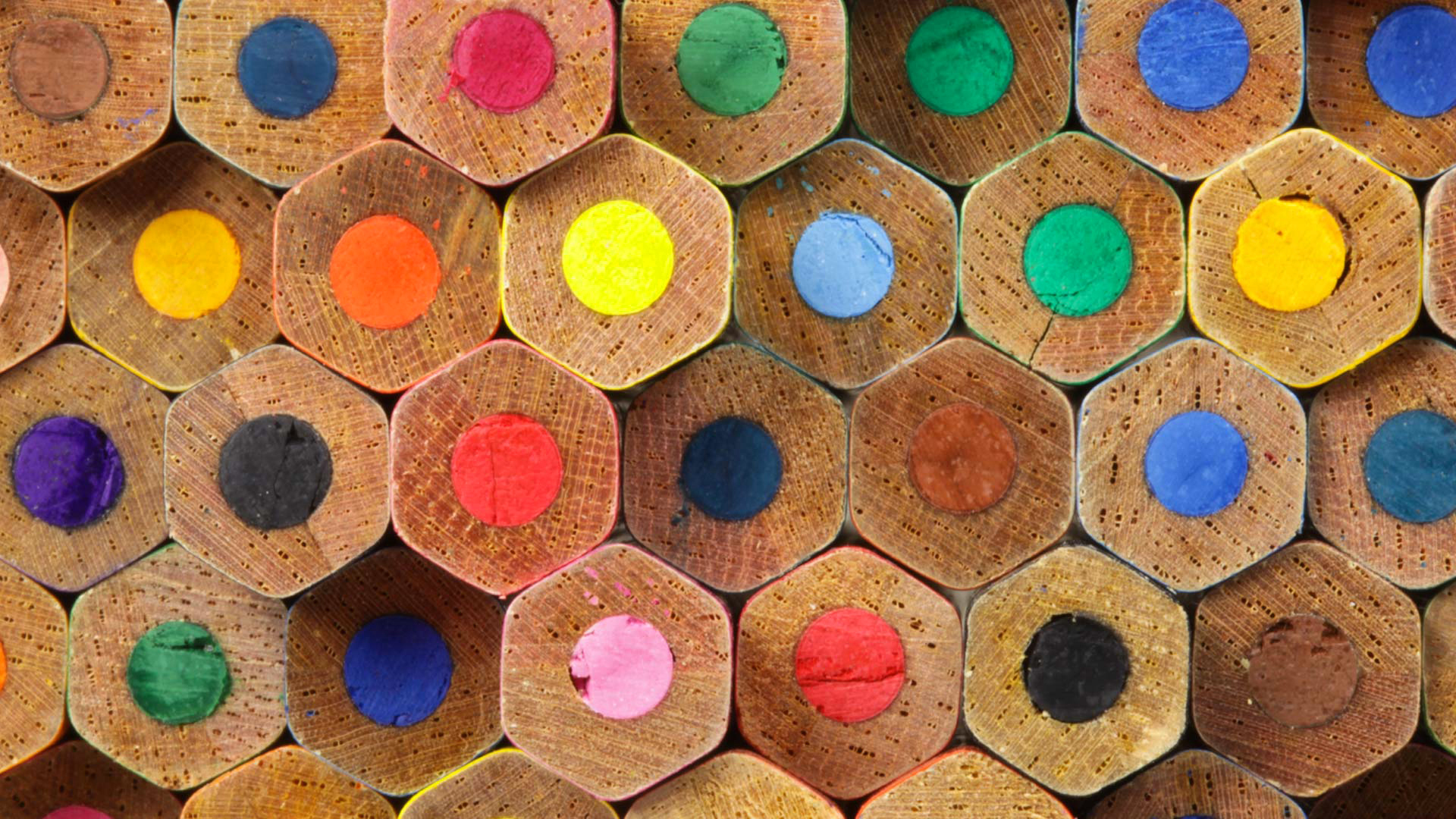 Description: A close up of a bunch of colored pencils with different colors on them.