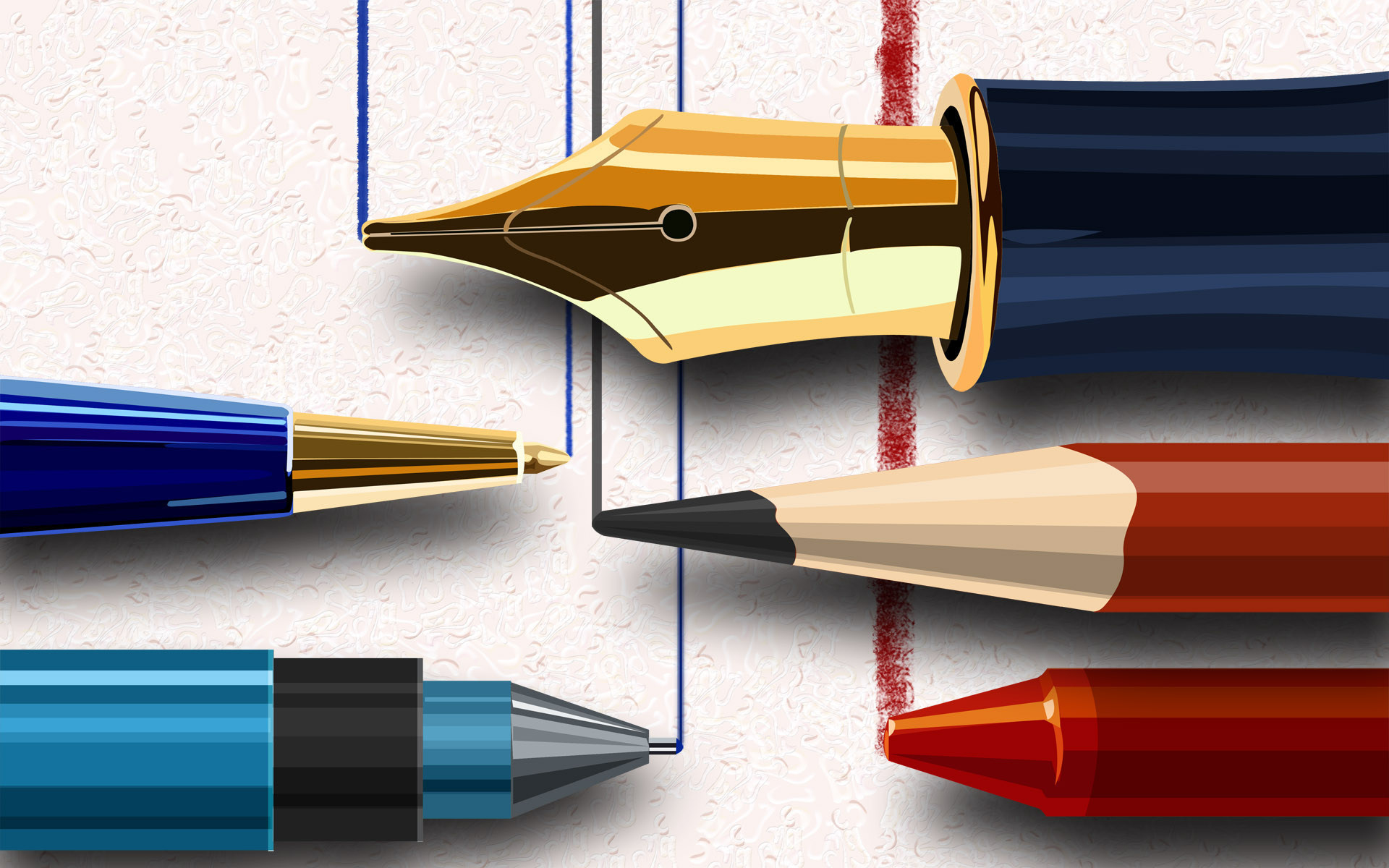 Description: A group of different colored pencils hanging from a line of wires with a red line in the middle.