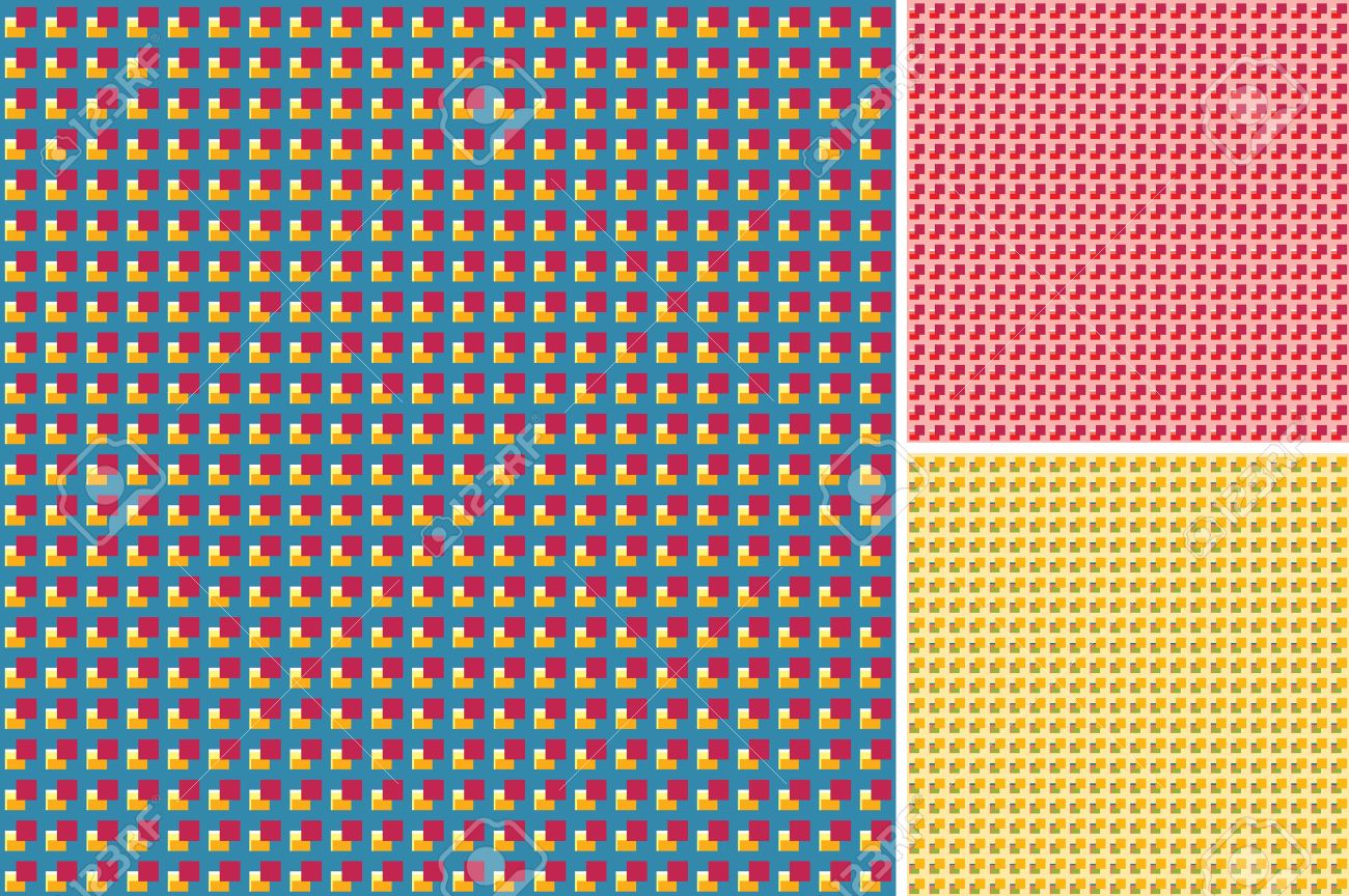 Description: A set of four different colored squares with dots on them stock photo - 1387999.