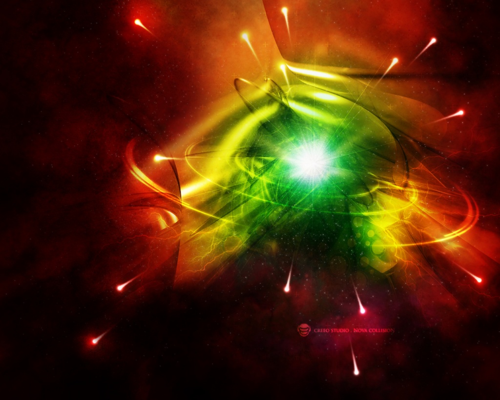Description: A colorful abstract background with a green and yellow light in the center of the image and a red and yellow light in the middle.