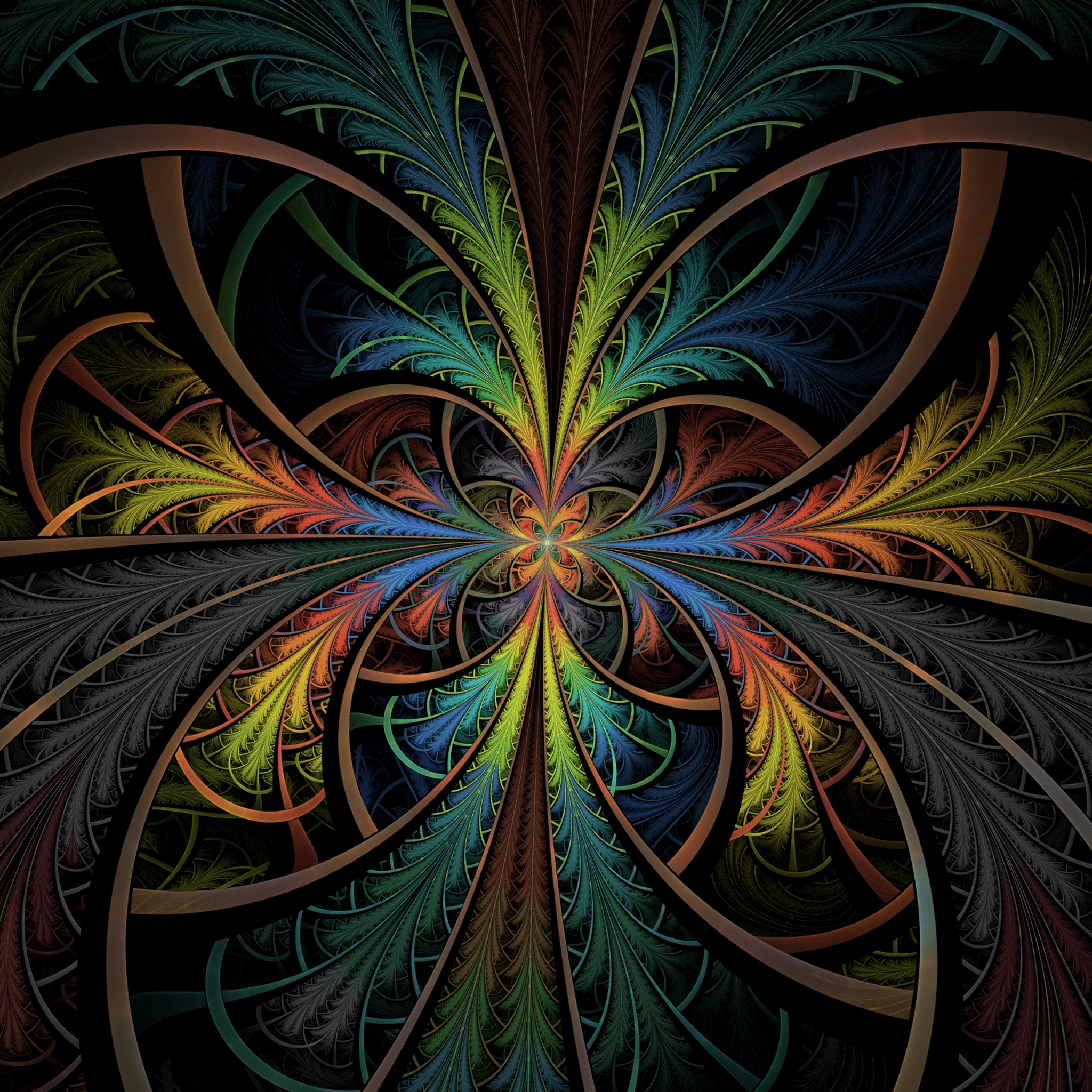 Description: A colorful abstract design with a black background and a green.
