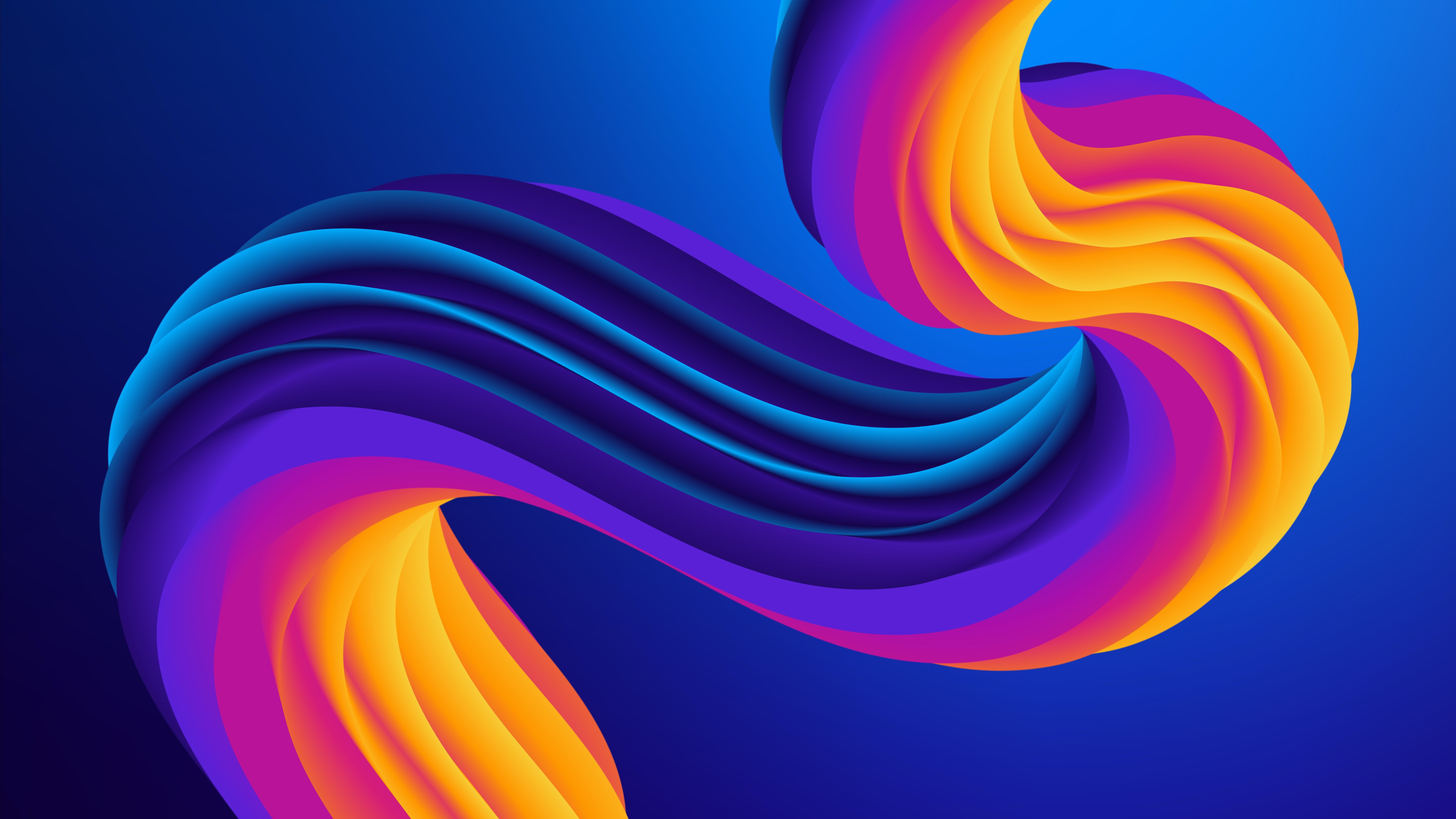 Description: A colorful abstract background with a wavy design on a blue background with a red and yellow stripe on the bottom.