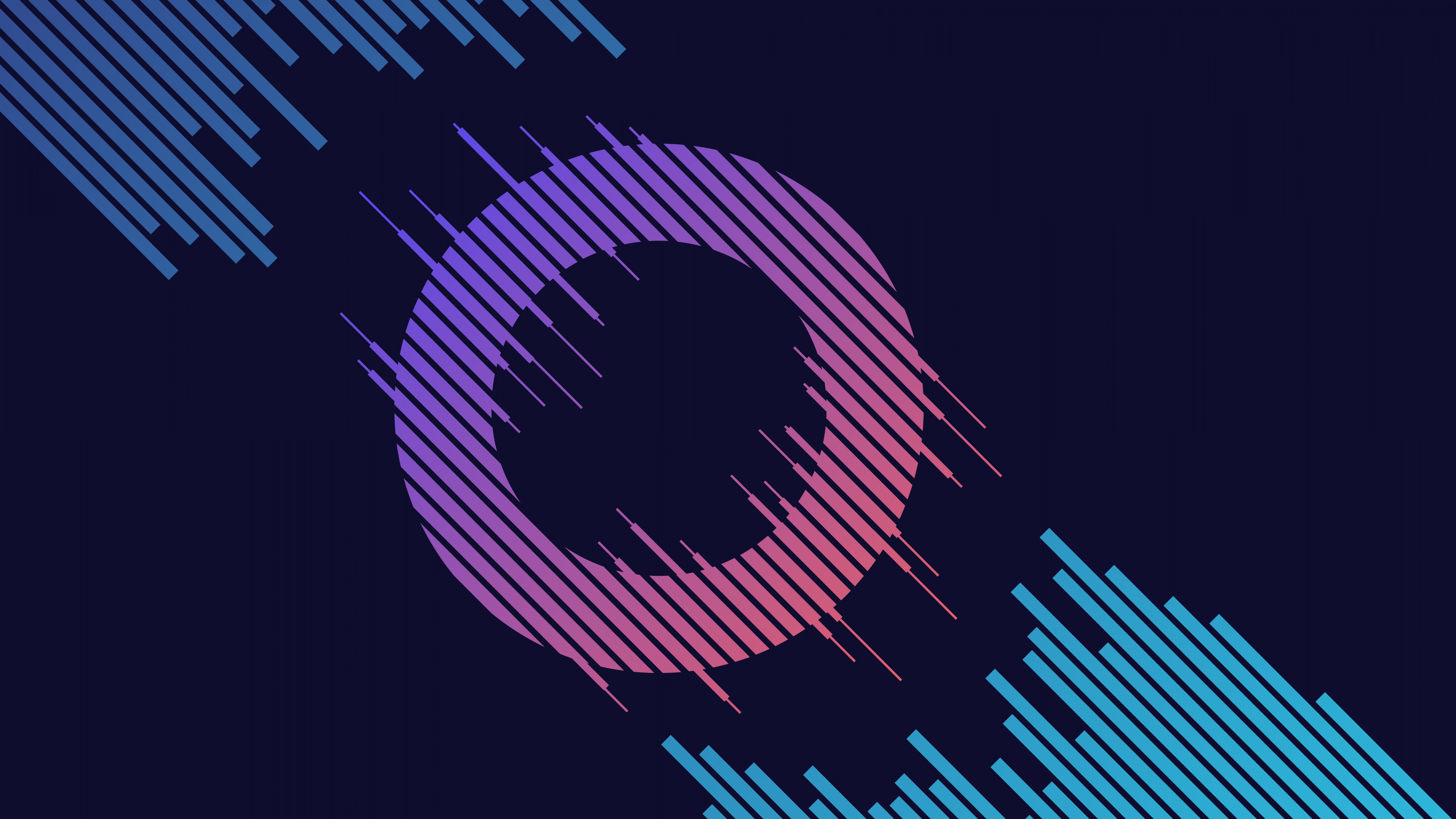 Description: A colorful graphic of a circle with a dark background and a blue background with a pink circle and a blue circle with a red circle.