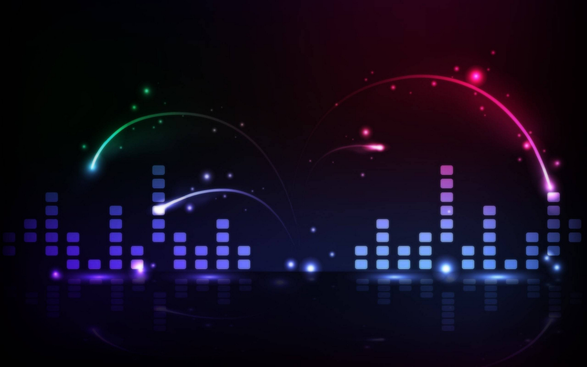 Description: A colorful abstract background with a city skyline in the background and a neon light at the bottom of the image.