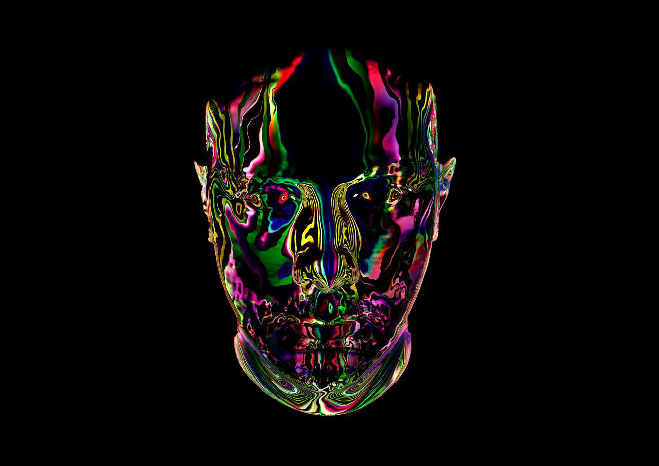 Description: A colorful face is shown against a black background with a black background and a black background with a black background.